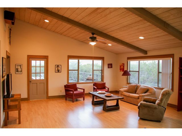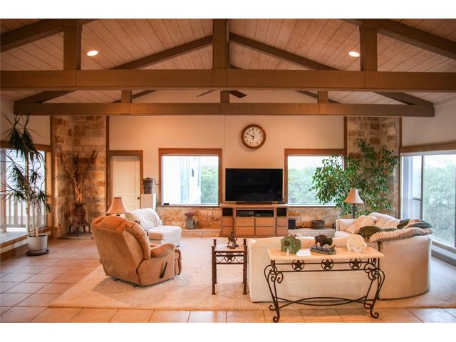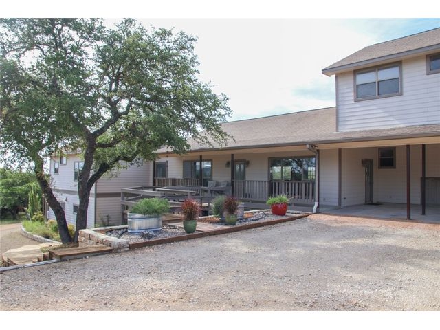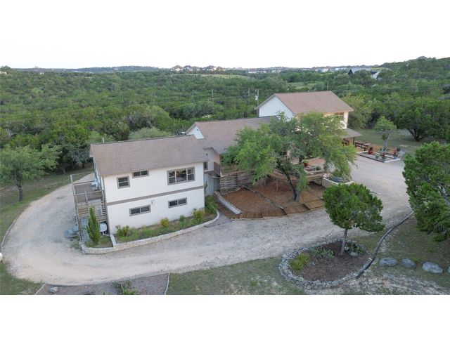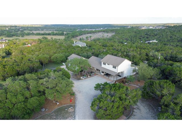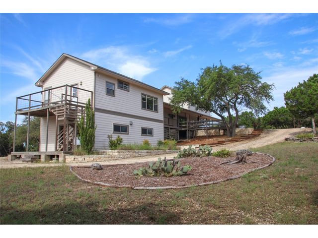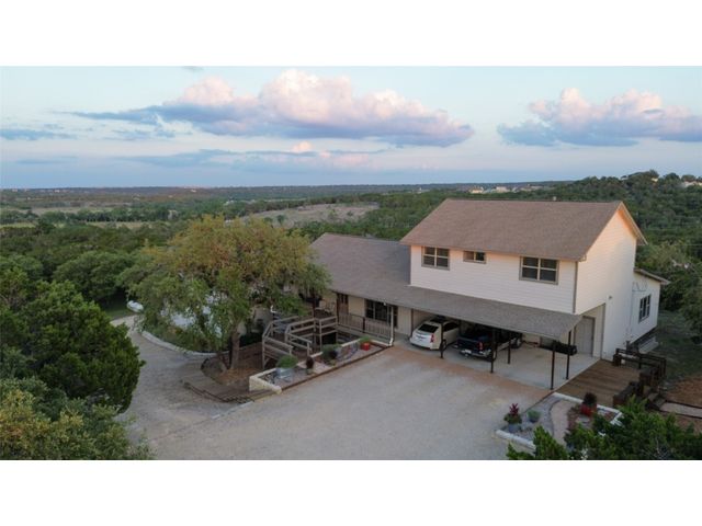 Country living at it's finest. This is a custom built home with entertaining, privacy and hill country views as the focus. The lot has endless possibilities to add a guest house, pool, horse stable and more. The home exudes natural lighting with an open floorplan and multiple dining areas. The kitchen includes custom cabinetry, 2 sinks, an island bar and a large pantry (optional gas connection for range). Off the kitchen is the built in desk area that leads to the 20x32 game room for additional entertainment. Upstairs you will find a second master suite with dual vanities and closets, along with two more bedrooms and a Jack & Jill bathroom between them. At the other end of the main level is the owner's retreat. There you will find a separate shower, dual vanities, a second washer/dryer, Jacuzzi tub and multiple closets/storage. There is also a private deck off the master bedroom for star gazing in the evenings. The deck leads down to the workshop/garage for additional convenience. Exterior features include 3 car carport on the main level, workshop/2 car garage on the lower level, decks on all sides with amazing views of the sunrise. Additional features worth mentioning include the storm shelter/mechanical room/storage, 45,000 gallon whole house rain water system, passive solar design, high efficiency HVAC system (water cooled condenser) and propane heating system. This house is located less than 3 miles from the new HEB, restaurants and entertainment. Horses are welcome and a new area is going in just down Nutty Brown Rd. New golf course under construction less than 10 minutes away towards Buda. Come check out this one of a kind home and make it your own.
