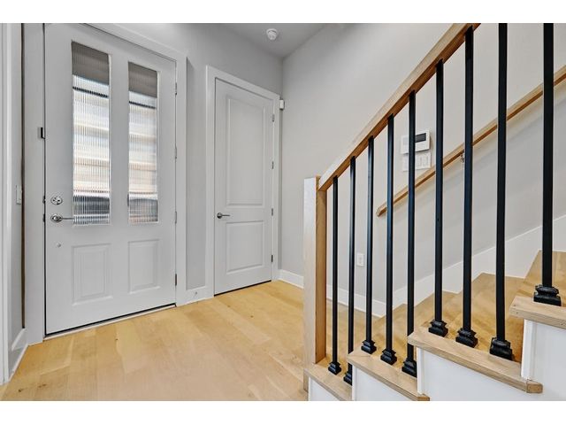 Incredible opportunity in the highly desirable South Shore Point, this gorgeous and luxurious Brownstone style townhome features downtown views! Built in 2019, this corner unit home is located in a gated community and boasts high ceilings with tons of natural light, upgraded hardwood floors, custom window coverings throughout and a primary suite with an oversized closet. Gourmet kitchen opens to the living room and has extended upper cabinets. Fourth floor with a flex space perfect for a game room with access to a private covered balcony complete with city views! Additional upgrades include: stacked cabinets throughout, Incredible location that is the best of both worlds, just steps from Town Lake with easy access to downtown, restaurants, shops, and all the hot spots on the East Side. Exciting residential and commercial growth in the area including Oracle Campus plans for an office and hotel addition just across the street. Pride in ownership