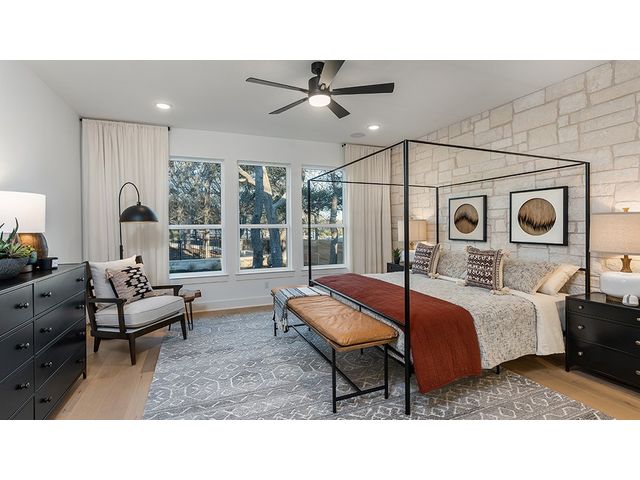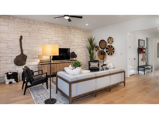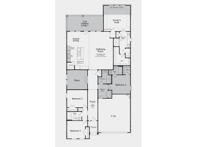 Built by Taylor Morrison, Ready Now. Meet the Chambray, a one-story home designed for a comfortable and open living experience. The gathering area provides a relaxing space, seamlessly connected to the kitchen and casual dining nook, both overlooking the covered outdoor living space. The kitchen island beckons you to sit down and enjoy a home-cooked meal. Towards the front of the home, two bedrooms share a bath, while a guest bedroom with a full bath adds convenience. For enhanced privacy, the generously sized extended owner's suite is situated towards the back of the home. Enjoy the simplicity and charm of the Chambray's well-thought-out layout. Structural options added include: Bed 4 with bath 3, extended owner's suite, gourmet kitchen 2, covered outdoor living 1, mudset shower at owner's bath, study in place of dining, raised ceiling at foyer and gathering room, and gas stub out.
