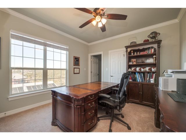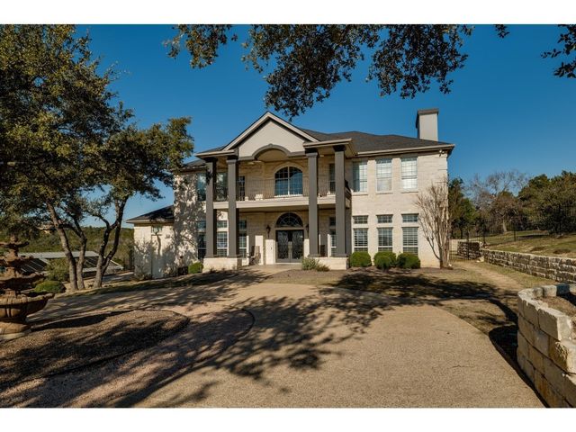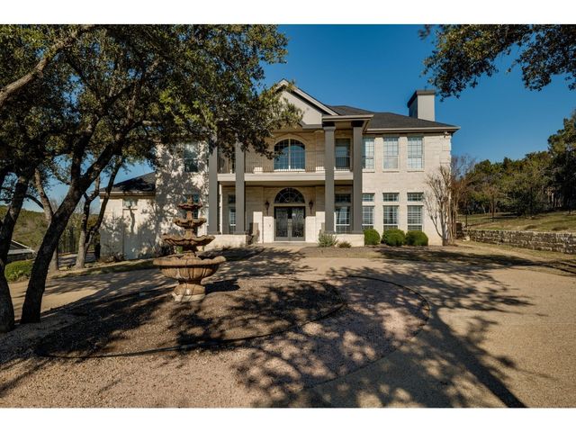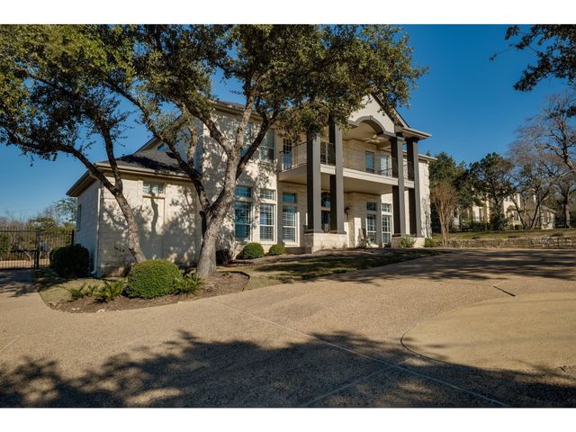 Gorgeous Hill Country views from most rooms. Circular drive & 3 car side entry garage, fire pit. Wonderful private yard and grounds. Soaring 2 story ceilings w/ beautiful detail. Front door opens into impressive sweeping curved staircase. Natural light from walls of windows showcasing views. Beautifully updated master suite, raised ceiling, frameless shower, gorgeous granite countertops. Upstirs also has an enormous second master suite. Back yard is enormous and has several locations for a massive pool.
