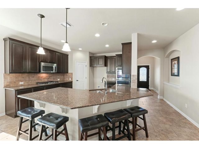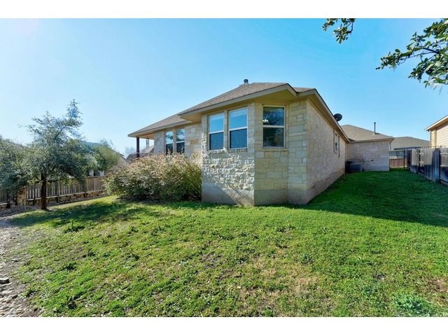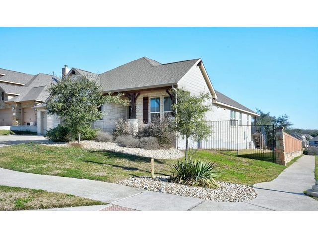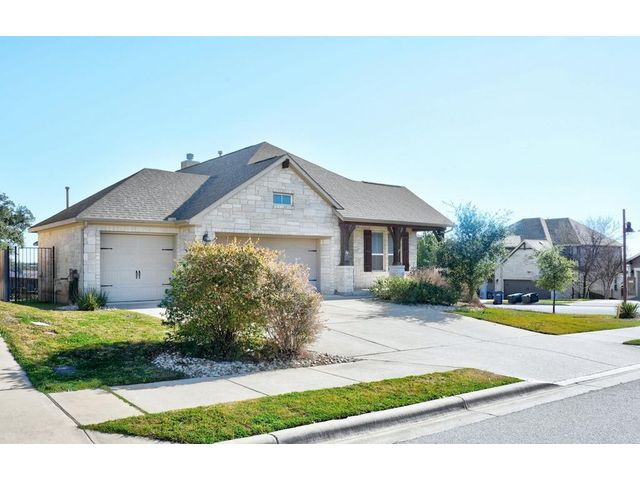 PRICE DECREASE** - PRIME LOCATION! - CORNER LOT- VIEWS! - 3 CAR GARAGE - ATTACHED ENSUITE ROOM COULD BE 4TH BEDROOM - BEAUTIFUL INSIDE!! - Welcome to your dream home! This corner lot home in the highly desirable neighborhood of Rancho Sienna is sure to check all of your boxes! The open-concept living areas boasts hill country views from its windows, and create an inviting atmosphere for family gatherings and entertaining guests. The spacious kitchen host modern appliances from its five-burner gas stovetop, to its double stainless steel ovens, ample counter space, and a convenient breakfast bar for easy seating! The master suite offers a generously oversized bedroom and an ensuite connected office space, or 4th bedroom. This home contains a split floor plan where two additional bedrooms away from the master suite provide comfort for guests. A three-car garage is attached for ample storage space. Outside, there is a covered porch with a beautiful yard sitting on a corner lot backing up to a greenbelt for utmost privacy. The property is conveniently located only 3 minutes to your nearest HEB! Rancho Sienna is proud to offer its residents miles of hike and bike trails, dog parks, pool, parks, playgrounds and more! Don't miss the opportunity to make this house your home. Schedule a showing today and experience the comfort and luxury of this Rancho Sienna gem!