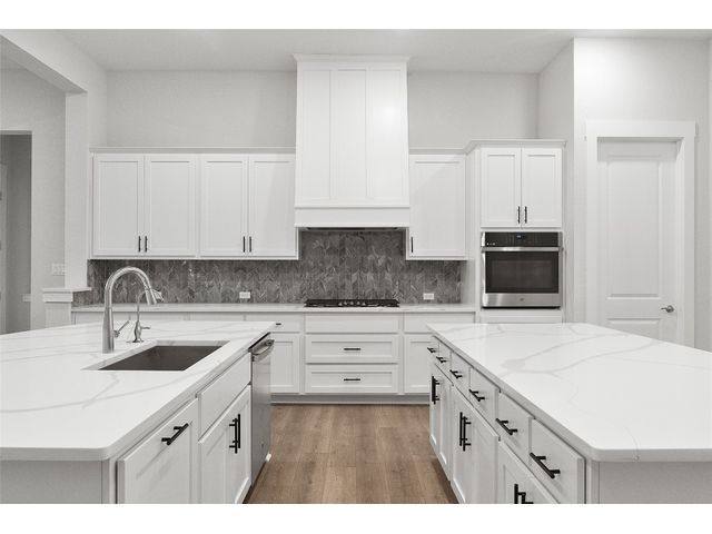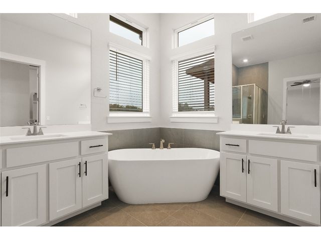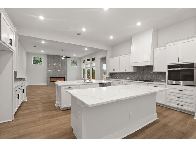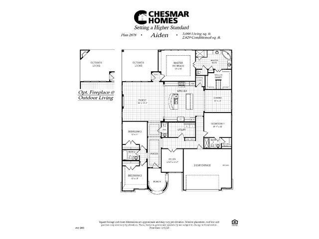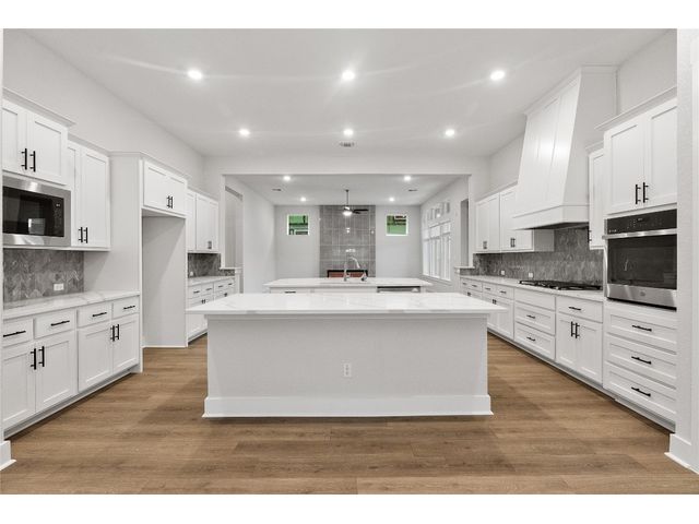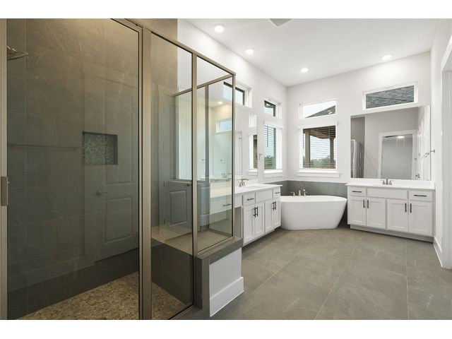 Chesmar’s Aiden plan is a stunning single-story family home, presenting four bedrooms, three and a half baths, a study, and an inviting outdoor living area. The Aiden's kitchen steals the spotlight, featuring two large islands with abundant counter space, strategically positioned between the family room and dining room for seamless gatherings. Offering a sense of privacy, the primary bedroom is secluded from all secondary bedrooms. The beautiful primary bath boasts a modern freestanding tub, a separate walk-in shower, dual vanities, and an expansive walk-in closet, completing the luxurious retreat. Experience the perfect blend of style and comfort all found in the boutique community of Broken Oak.