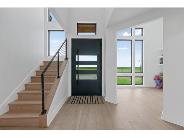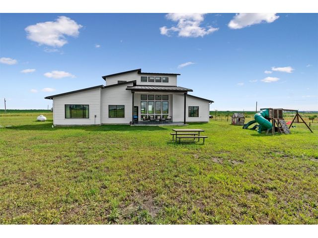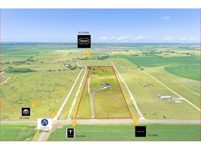 This home was built with a beautiful blend of craftsmanship and modern finishes. Built just two years ago, this custom-built home sits on an expansive 10-acre lot. Inside, be greeted by an abundance of natural light streaming through expansive windows, highlighting the lofty ceilings and open floor plan. This home offers 3 bedrooms, 3.5 bathrooms, a designated office, and versatile flex space. This is luxury country living, from the smooth wall finishes to the custom cabinets and unique "hidden" pantry. Discover the convenience of pull-out shelving and a built-in beverage refrigerator, while the sleek quartz countertops and backsplash add a touch of elegance to the kitchen. Indulge in the lavishness of the primary suite, complete with high ceilings, a chandelier, and a relaxing en-suite bathroom. Complete with a standalone bathtub, walk-in shower, and floating dual vanity with vessel sinks. Upstairs, a versatile flex space awaits, adaptable to meet your needs whether it be a playroom or media room. Throughout the home, you'll find exceptional upgrades including European white oak floors, stunning custom cabinetry, a laundry room with an additional sink, and a mudroom designed for optimal organization. One of the many advantages of owning 10 acres is privacy. Relax on the covered patio, knowing that you won't be disturbed by any neighbors. Worried about accommodating larger vehicles? Rest assured, the oversized two-car garage accommodates your Texas-sized trucks. Located in close proximity to State Hwy 95 N, Tesla, the upcoming Space X facility, and the airport, this home is perfectly situated for those who value modern design and booming development.
