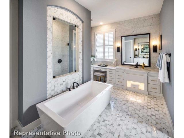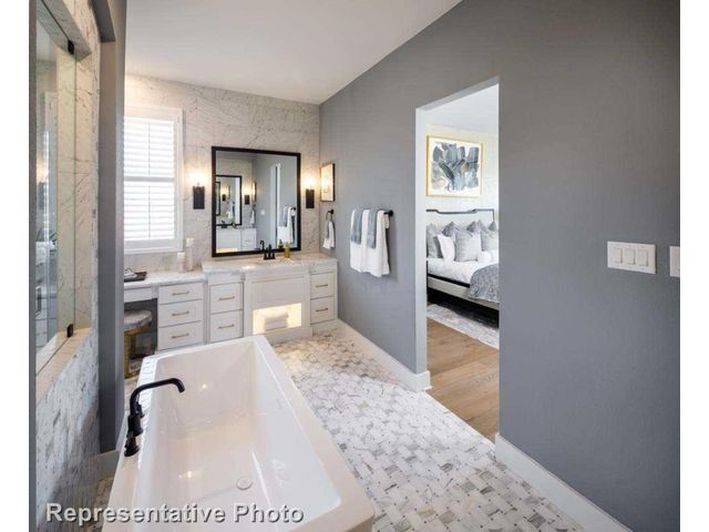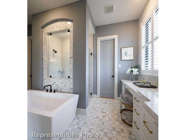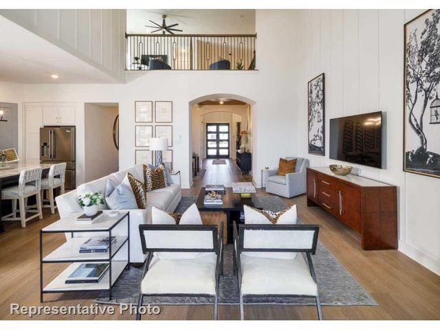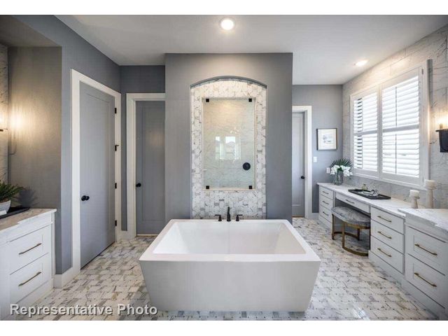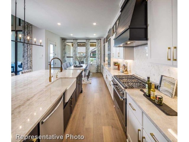 MLS# 1255132 - Built by Highland Homes - Ready Now! ~ Discover the epitome of upscale living in this captivating two-story residence that demands attention. Boasting four spacious bedrooms and 4.5 baths, this home offers an abundance of space and comfort for the discerning homeowner. Enter and be greeted by the warmth of a cozy fireplace in the family room, complemented by luxurious wood flooring that exudes elegance throughout. The upgraded kitchen is a culinary haven, featuring under-counter lighting, a convenient trash can pull-out, and upper cabinets with glass doors, marrying style with functionality seamlessly. Entertain in style in the formal dining room, complete with a charming hutch that adds sophistication to any gathering. Retreat to the extended primary bedroom, a serene sanctuary offering additional space for relaxation and rejuvenation. Indulge in the opulence of the primary bath, featuring a striking freestanding rectangular tub, perfect for unwinding after a long day. Step outside to the extended outdoor living space, complete with a gas drop, ideal for alfresco entertaining and leisure. Practicality meets convenience with full gutters, ensuring proper drainage and maintenance of the home. Outside, enjoy lush greenery with full sod and sprinklers, creating a picturesque landscape that enhances the curb appeal of this exquisite residence. Don't miss the opportunity to make this exceptional property your own – schedule a viewing today and experience the pinnacle of luxury living!