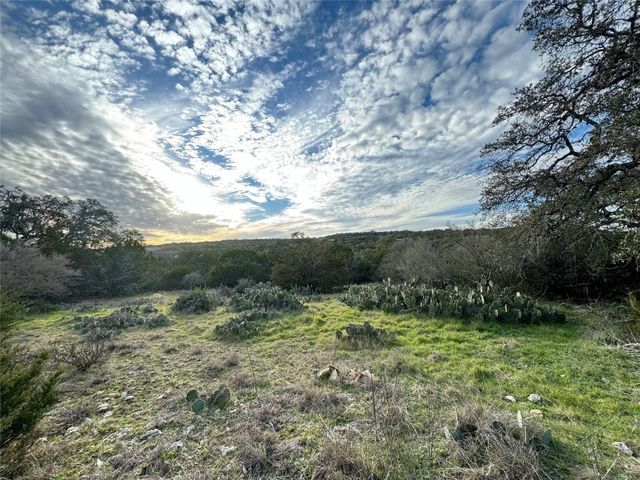 Fabulous 270 degree Hill Country views overlooking a heavily-treed valley. Great build site options. Mix of medium and large hardwoods including majestic oaks and understory persimmons, plus some large cedar. The first thing you will notice, as you turn off your engine, is the quiet. Stroll to the bluff and get out your signing hand- this perfectly-priced piece of property - currently under agricultural exemption - has phenomenal views with trees as far as the eye can see. The fence is not the boundary. Walk 100ft up the road and there is a boundary pin spray painted white by the fence. There are multiple build sites on this gorgeous bluff.