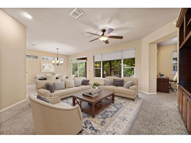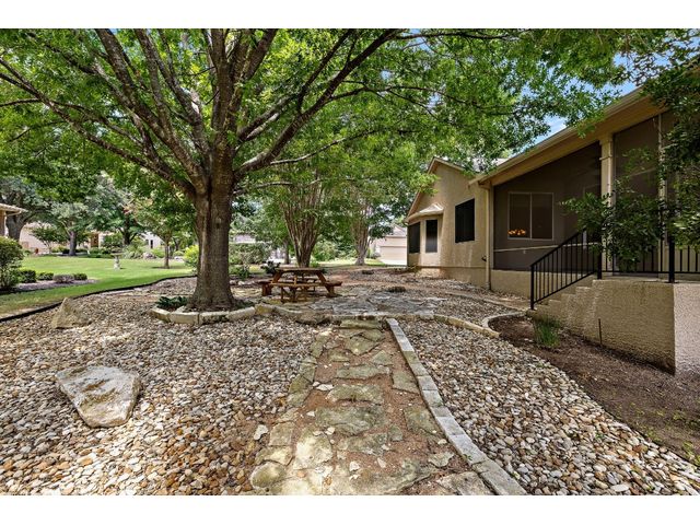 Welcome to a beloved Burnet Plan in Sun City Texas, a delightful 55+ Active Adult Community with endless amenities, clubs and hobbies to enjoy! There is so much to love about this property! A corner lot which allows for great parking for entertaining. Enjoy the great location that is close to Williams drive giving you access to all things Georgetown yet close to the heart of Sun City Activities. The Burnet floor plan boasts a great kitchen with a Bosch Dishwasher and pull out in cabinets. A breakfast area and pantry open to the large living and dining area. A large utility room with a sink and storage cabinets. The nice size study is perfect for your organizational office needs or a den. With a great screened in patio you will enjoy many milder weather days. The primary bedroom is spacious with a bay window. The primary bath has a separate soaking tub and separate shower. Your guests will feel right at home with a large guestroom and closet with a guest bathroom just down the hall. Carpet that is located in the living, study and bedrooms has just been cleaned. Ceramic tile covers the remainder of the floors. The garage has many storage cabinets and small workbench and a water softener. This home has been well loved and is ready for more fun to be had in Neighborhood 9.