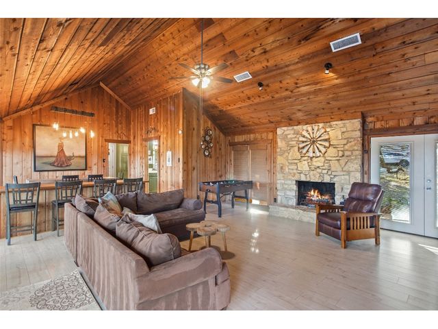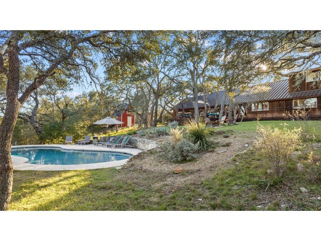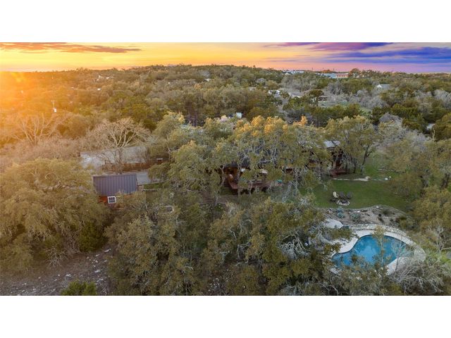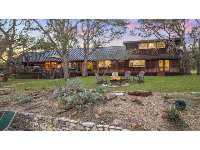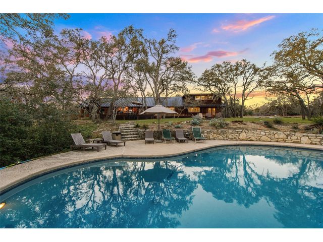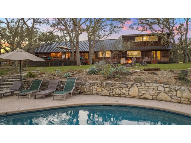 Commercial development opportunity on HWY 290!! Discover the allure of Dripping Springs with this rustic property, where country tranquility meets city accessibility. Just 28 minutes from vibrant Austin, it's your hill country getaway close to local dining, breweries and entertainment in Dripping Springs. Sitting on over 15 acres with varying topography and a wet weather creek, this retreat is ideal for nature lovers. The 2,378 sq ft home, built in 1972 and thoughtfully updated, features four bedrooms, three bathrooms, including an upstairs apartment with its own bath and kitchenette. A successful short-term rental, it comes fully furnished. The kitchen, bathed in natural light from a skylight and framed by heritage oak views, showcases olive green cabinets and a unique hand-painted backsplash. The adjoining dining and living space, with its limestone fireplace and cabin inspired wood paneled walls provides breathtaking Hill Country views and leads to the pool and outdoor dining areas. The home's freshly painted bedrooms and new flooring create a tranquil, modern vibe. The property also includes a fun-filled carport with games and various outdoor dining areas under majestic oaks, overlooking the pool and picturesque landscape. Outdoor features include a beautifully replastered pool, new deck railing, and inviting fire pit areas, ideal for stargazing under the dark skies. Recent improvements include a new metal roof, AC, flooring, pool enhancements, updated piping, a new well pump, and a maintained septic system. With no deed or zoning restrictions and significant HWY 290 frontage, this property is perfect for commercial development or entrepreneurial projects. Residential development schematic available also including proposed HWY 290 expansion. With this property having NO HOA, NO deed restrictions, and now out of the DS ETJ it's a commercial opportunity in the expanding area of Dripping Springs, between downtown Drip and Belterra Village.