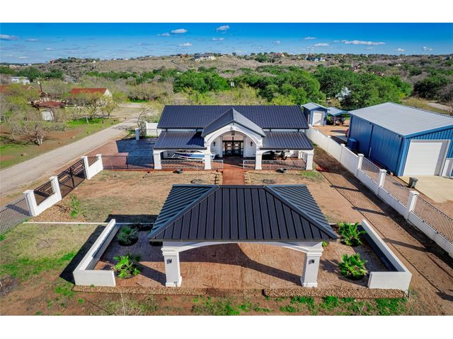 Situated on a sprawling 1.124 acre lot! As you step through the grand foyer of the 5657 SF main home, you'll immediately be captivated by the high-end finishes and luxurious features that surround you. No expense has been spared in creating a home that exudes opulence and sophistication. With 2 living areas and 2 kitchens ($20K includes all the main kitchen and second kitchen appliances), this home is perfect for entertaining guests or accommodating a multi-generational family. The 3 elegant electric fireplaces add ambiance and warmth to the living spaces, creating a cozy atmosphere for those colder winter nights. The main level owner's ensuite is a sanctuary within itself. But the indulgence doesn't stop there. You'll never have to worry about accommodating your adventurous friends and family members. A separate RV Garage/Shop with a loft awaits you. Enjoy the convenience of the plantation shutters, not only in the living space area but throughout the entire garage providing privacy and control over natural light. The garage can easily store multiple vehicles and a 40' RV. Its equipped with an electrical hook, water, and sewer. The loft/living area provides an additional 700 sf loft of living space; plus a large bedroom on the second floor, while on the first floor a bathroom w/ washer/dryer hookup (it includes stackable washer & dryer, along with kitchen appliances). On the exterior of the garage, there are 2 additional RV hookups fully equipped with a 30 amp & a 50 amp electrical w/water & sewer. The garage connected to the main dwelling can also comfortably house a 40' RV which is also fully equipped w/ RV electric hookup, water, & sewer. On the exterior of the main dwelling there's an additional RV hookup with electric, water, sewer. The shimmering 10,000 gallon Koi pond adds a touch of serenity, plus a gazebo is nestled between the two homes. You also have private access to Canyon Lake boat ramp, fishing and community parks.
