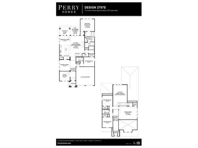 Home office with French doors frames the entry. Formal dining room. Kitchen features a large pantry and an island with a built-in seating space. Two-story family room features a wall of windows. Private primary suite with three-large windows. Primary bath features dual vanities, a garden tub, separate glass enclosed shower and a large walk-in closet. Game room and secondary bedrooms complete the second level. Covered backyard patio. Two-car garage.