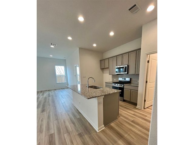 Private Gated Community-This charming and inviting single story cottage home is nestled in the small Boutique community of Wellspring, built by award-winning Clark Wilson Builder. Gated community, private yards, resort style pool, pickleball, gas grills, full yard maintenance, yard games, strolling gardens, fire pit lounge. Features 2 bedrooms, 2 full baths + study. 10' ceilings throughout with luxury vinyl flooring in entry, living, dining, and family room. The kitchen is open to the living and dining and has 42" painted cabinets/crown molding with ample kitchen space with an oversized granite countertop. Stainless steel Whirlpool appliance package includes a vented microwave, dishwasher, and 5 burner gas range. Large, oversized walk-in shower with quartz bench in the primary bath, seamless shower glass. Full 2-car garage with garage door opener. Just a short stroll to the community amenities. Situated just minutes from the 130 toll, Old Settlers Park, Kalahari, downtown Round Rock and just 9 miles from Samsung, this thoughtfully designed community is a mix of cottages and townhomes, each with its own private fenced yard. HOA fees are $53 per month and include yard maintenance and full sprinkler system for a lock and leave lifestyle. Please visit our model homes located at 8526 Torrita Drive and 8534 Sommery Lane in Round Rock. Ask about Builder incentives when using Preferred lender and move-in ready! Wellspring Round Rock- See Floorplan B attached.