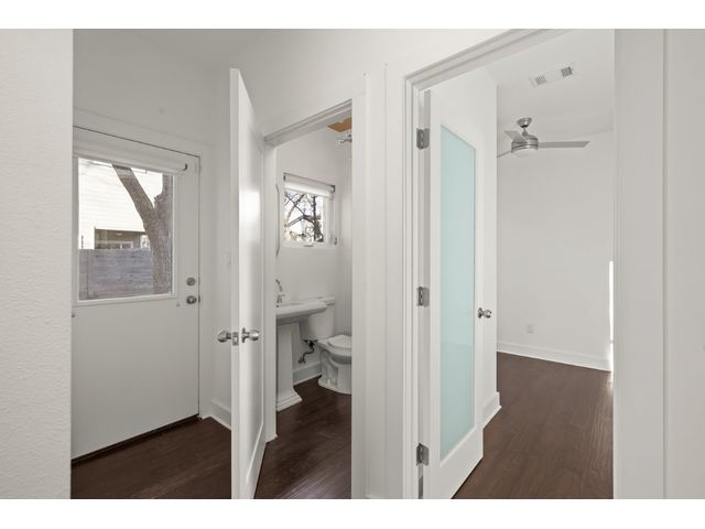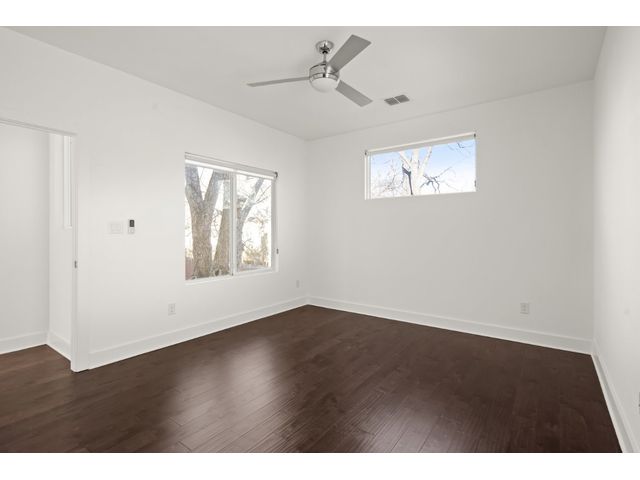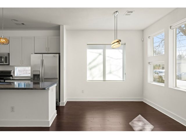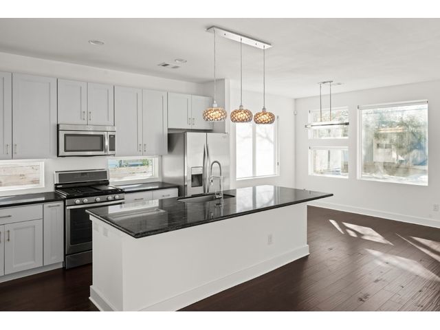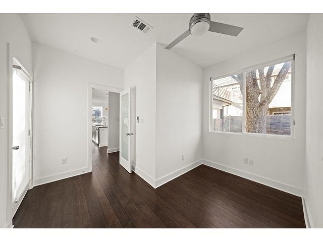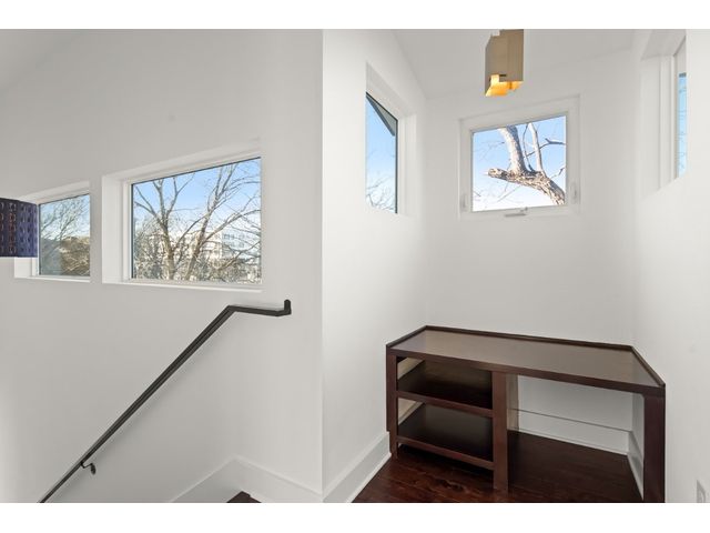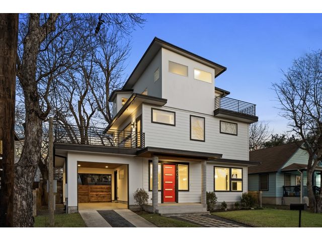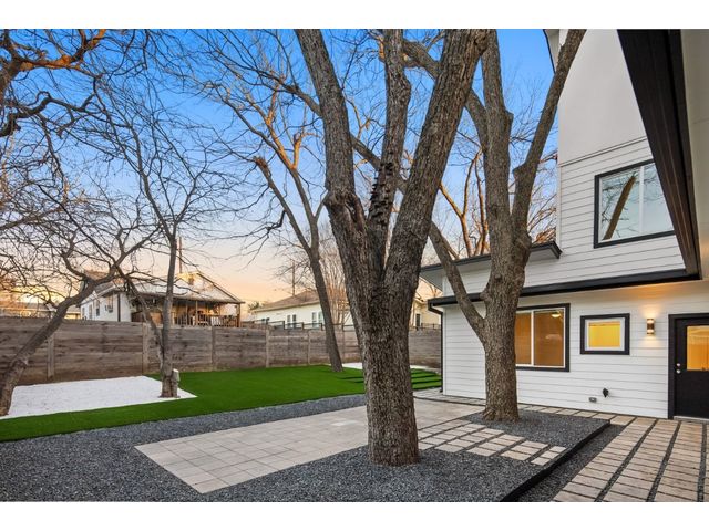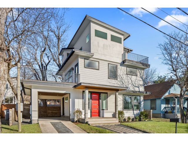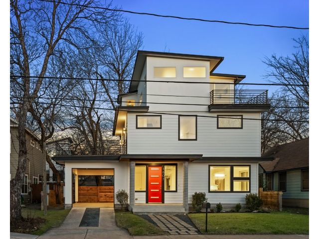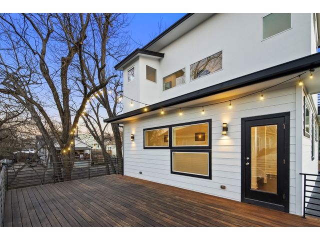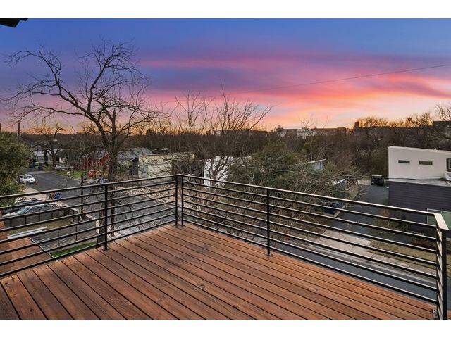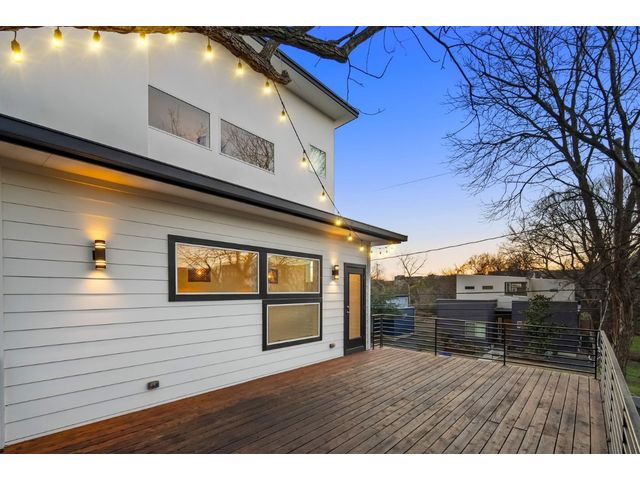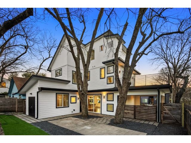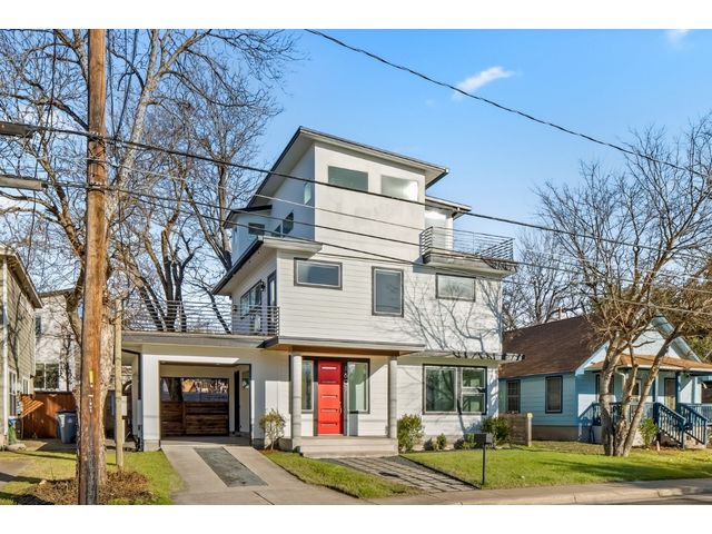 This exceptional residence embodies the perfect blend of luxury and comfort across its three-story layout, featuring multiple balconies that add to its charm. The home includes three bedrooms, office space, and two and a half bathrooms. Abundant windows throughout ensure that each room is bathed in natural light, enhancing the inviting ambiance. The ground floor boasts an open-concept design with a chef's kitchen equipped with stainless steel appliances and granite countertops, ideal for culinary enthusiasts. The third-floor "crow's nest" primary suite is a private retreat, offering two walk-in closets, a personal balcony with exceptional views, a double vanity, and a cozy reading nook for quiet moments. The expansive second-floor balcony provides a perfect setting for outdoor entertainment and relaxation. It also boasts a beautifully landscaped, fully fenced backyard. The outdoor space is adorned with gorgeous, mature trees and features zero-maintenance turf, providing a lush, green setting for year-round upkeep. A large, enclosed storage area offers ample outdoor equipment and essential space. The property's location is highly convenient, situated just 2 miles from downtown Austin, allowing easy access to the city's vibrant urban life. It is also only 6 miles from the airport, making travel effortless. The home includes three bedrooms, an office, and two and a half bathrooms, with luxurious touches such as a chef's kitchen with stainless steel appliances and granite countertops and a "crow's nest" master suite on the third floor with private balconies offering downtown views. The combination of its strategic location, stunning outdoor space, and thoughtfully designed interior makes this home a remarkable urban oasis.