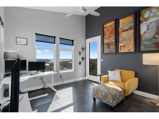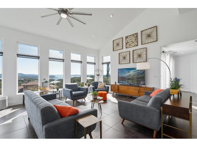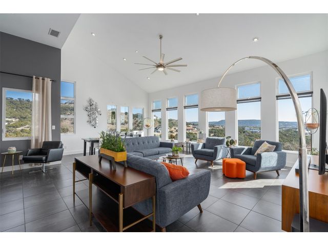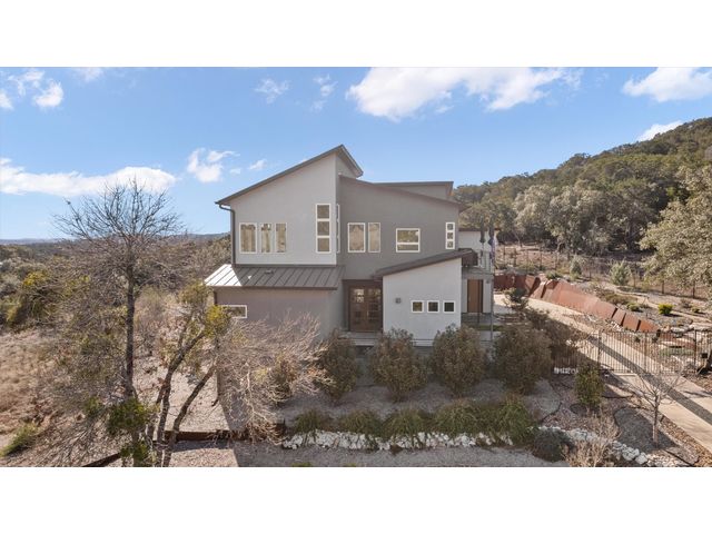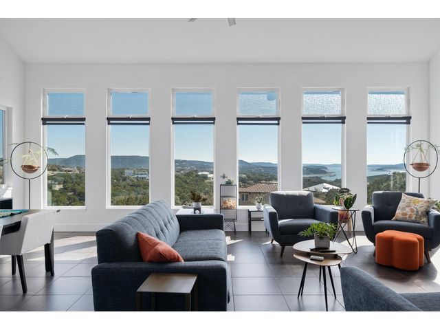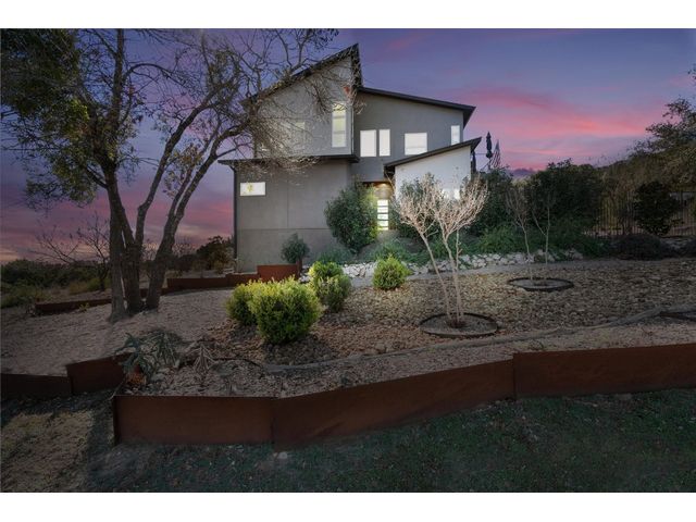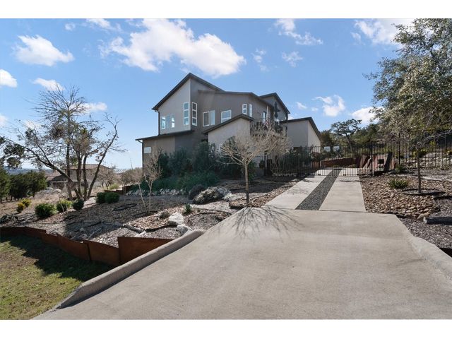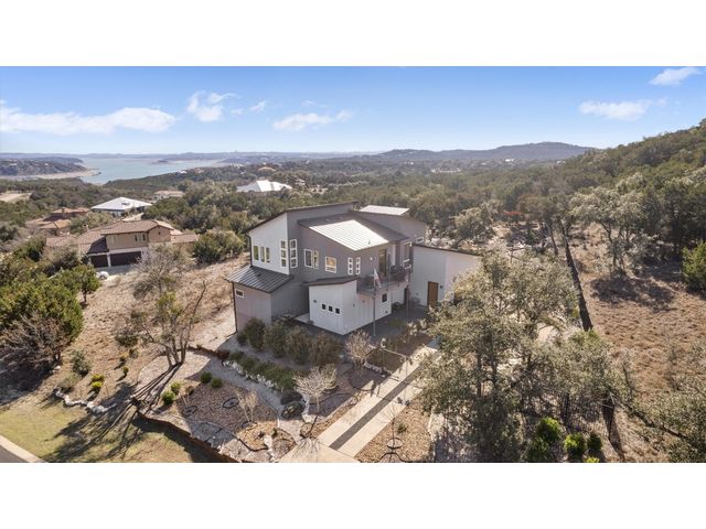 To see 3D Tour on Zillow go to Facts & Features section. On Realtor.com click on Virtual Tour Link on Main Page. Experience modern living at Kellywood Estates where contemporary elegance seamlessly intertwines with nature's splendor. Nestled on a private cul-de-sac, this residence is a distinct opportunity for the discerning buyer. Boasting panoramic views of Lake Travis and the hill country, the property provides a breathtaking backdrop. Designed with 10'+ ceilings and 8' doors, the residence establishes an open and inviting ambiance. The main level encompasses a luxurious owner's suite, custom walk-in closet, second bedroom, bath, bonus room, and a convenient laundry room. A covered private patio extends the living space outdoors, offering an idyllic setting for enjoying nature and lake views. Ascending to the second floor reveals soaring vaulted ceilings, a seamless open floor plan, and energy-efficient double-pane windows framing captivating lake views. These windows, accompanied by custom UV blocking solar shades, balance natural light and enhance the home's energy efficiency. At the heart of the home is the custom-designed modern kitchen, offering enchanting lake views. The kitchen's private deck and the three IPE wood decks on the second floor provide additional outdoor spaces. Tailored for nature enthusiasts, the residence includes a partially fenced backyard, outdoor seating areas, a dedicated fire-pit zone, and a flourishing organic vegetable garden. The courtyard entrance, adorned with a unique retaining wall, adds an artistic touch. In addition to its picturesque seclusion. Low HOA! Seize the opportunity to make this exceptional property your own—schedule a viewing today and if interested explore the adjacent one-acre lot for sale by the same owner; 8604 Kelly Cove. Your dream home awaits, poised to captivate discerning buyers