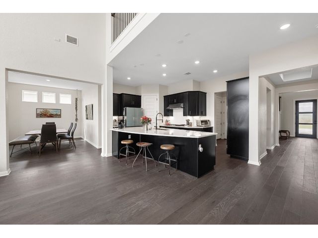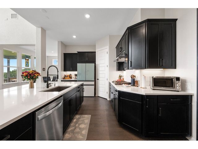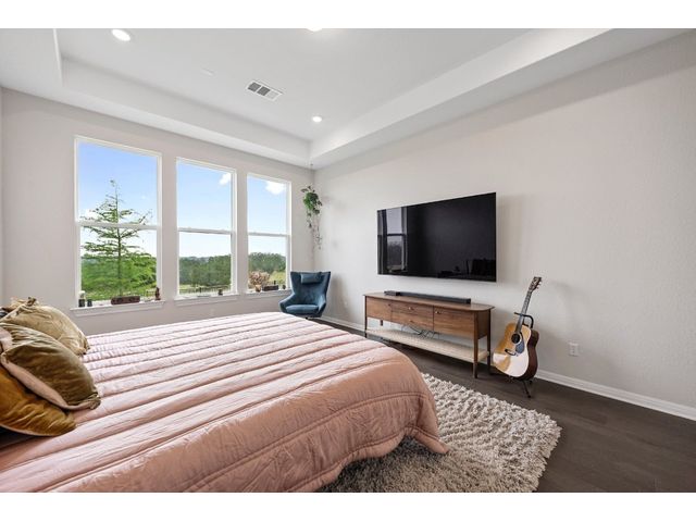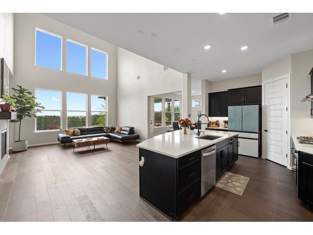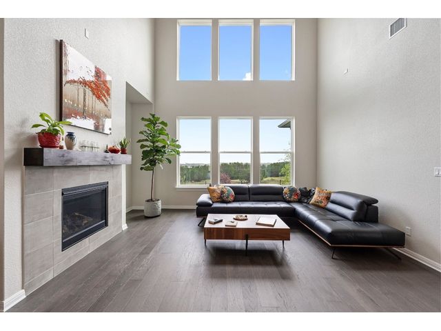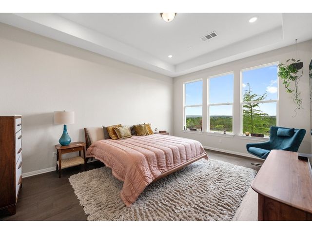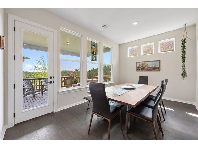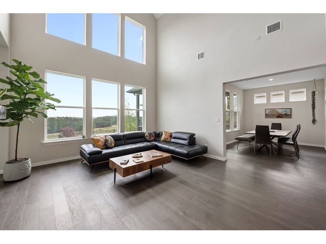 Amazing hill country views for miles!!! Don't miss out on this stunning 5 bedroom, 4 bathroom home located in the prestigious Headwaters neighborhood is move-in ready with the perfect multi-generational floor plan. As you step into this home, you are immediately greeted by the grandeur of soaring ceilings, the breathtaking abundance of natural light, and the expansive views of the Texas hill country. The main floor boasts a well-appointed guest room, currently used as a home office with a full bath that can be used as the perfect retreat for visitors or an in-law suite. The family room, featuring a cozy gas fireplace, beckons you to unwind and create lasting memories with your loved ones. Adjacent to the family room is the modern kitchen with stainless steel appliances, complete with a generously sized island, providing a delightful space for culinary endeavors and entertaining. The formal dining room has been transformed into a versatile media room with an oversized custom barn door adding warmth and character to the entryway. The extended breakfast area offers unobstructed views of the scenic greenbelt while comfortably accommodating large gatherings. Enjoy your morning coffee or your evening glass of wine from the serene custom-tiled back porch that offers privacy and tranquility. The primary bedroom, with its captivating sunrise views, offers a peaceful haven while the spacious ensuite offers a spa-like retreat. Upstairs, you’ll find 3 additional bedrooms, 2 additional full bathrooms, and a family room with more beautiful views of the Texas hill country for miles. Outside, the meticulously landscaped yard boasts over $15k custom-designed landscaping. The Headwaters neighborhood offers award-winning amenities, including a resort-style pool, a well-equipped gym, extensive hiking and biking trails, and inviting playground areas, with exemplary schools. Elementary School, Child care & Public Market coming soon!