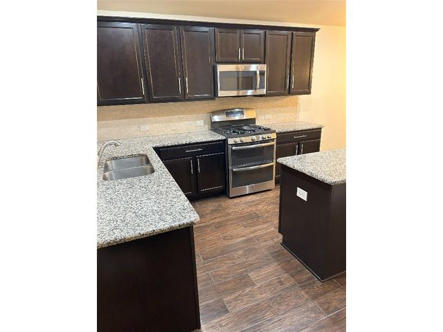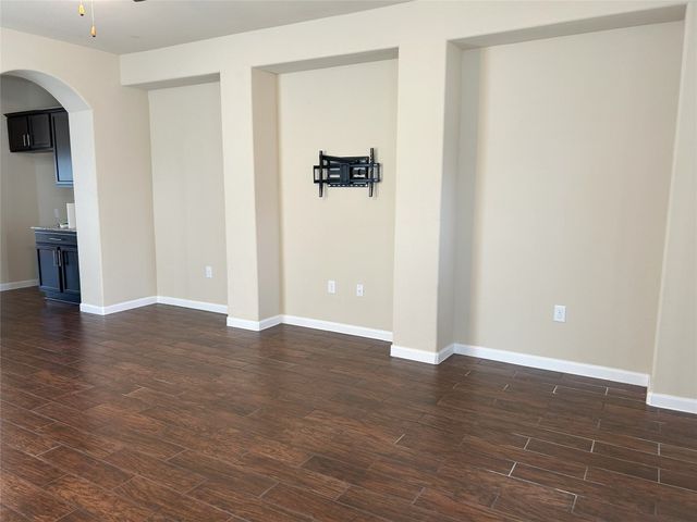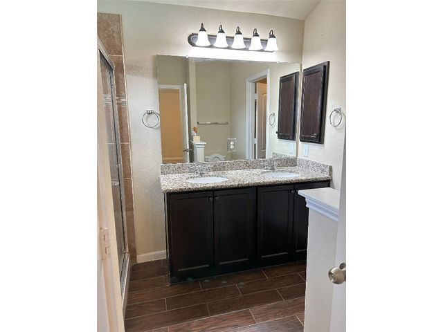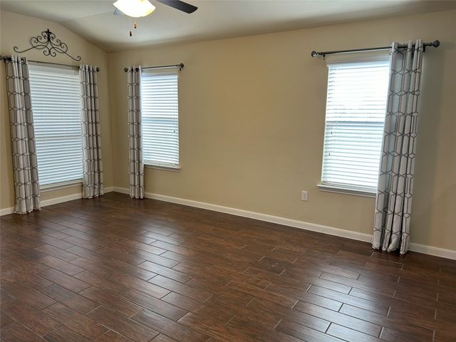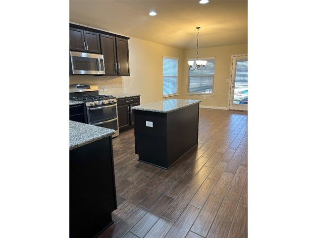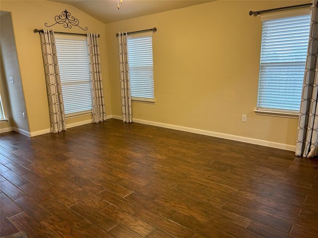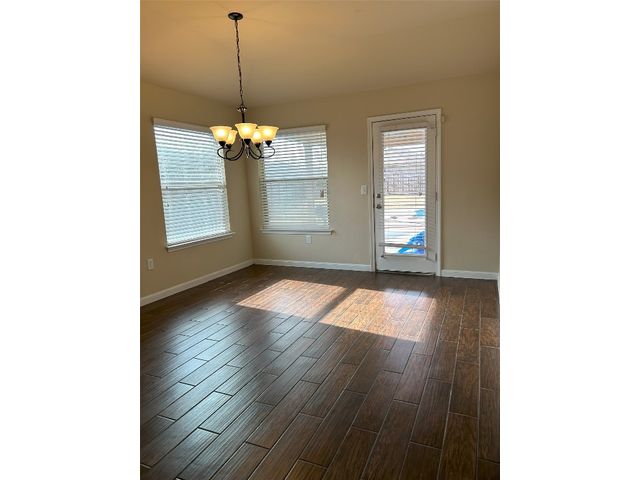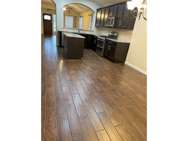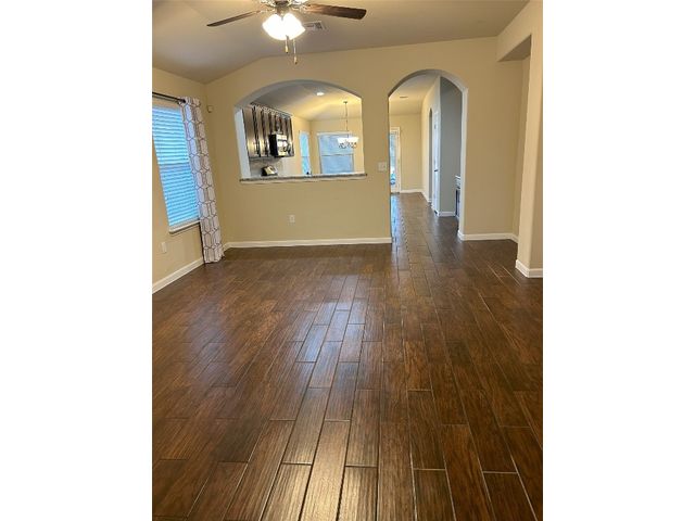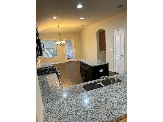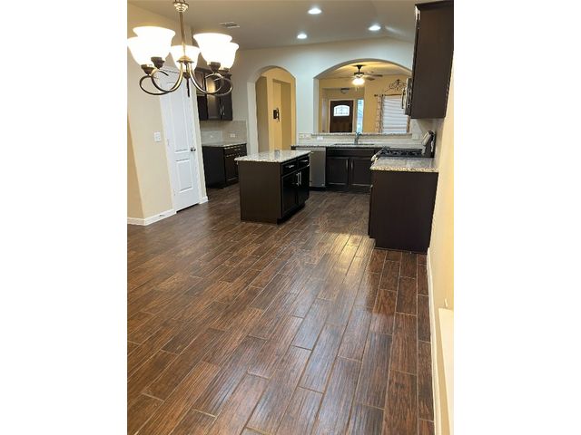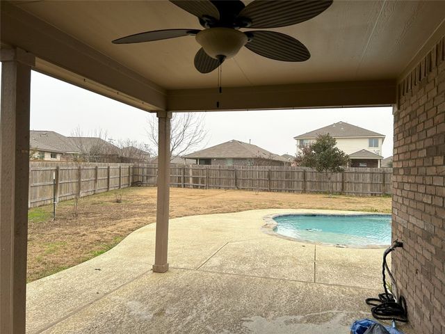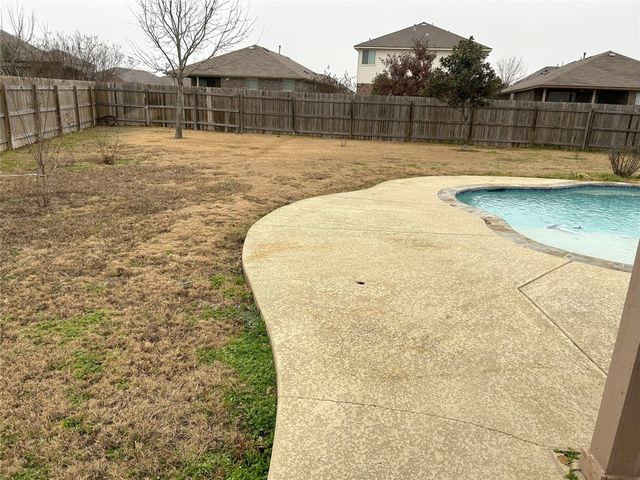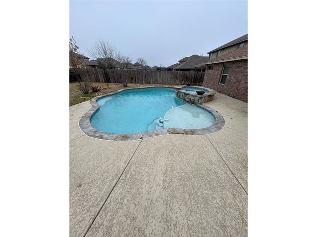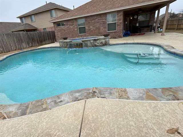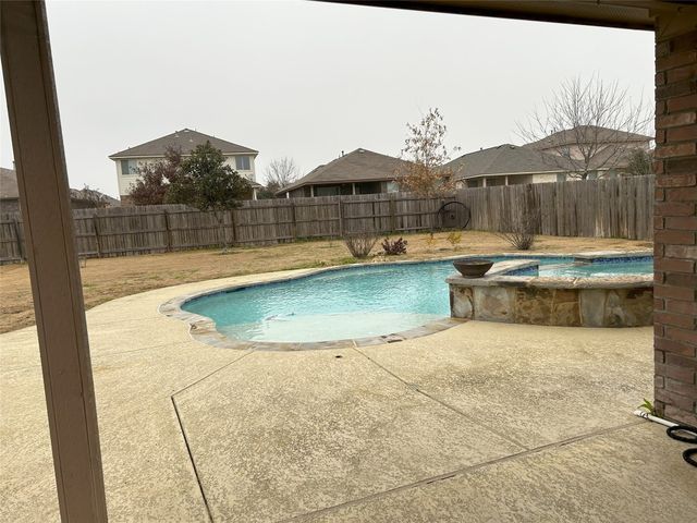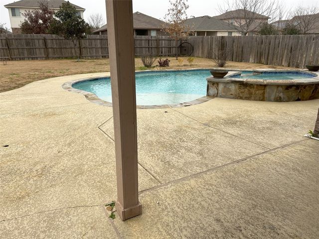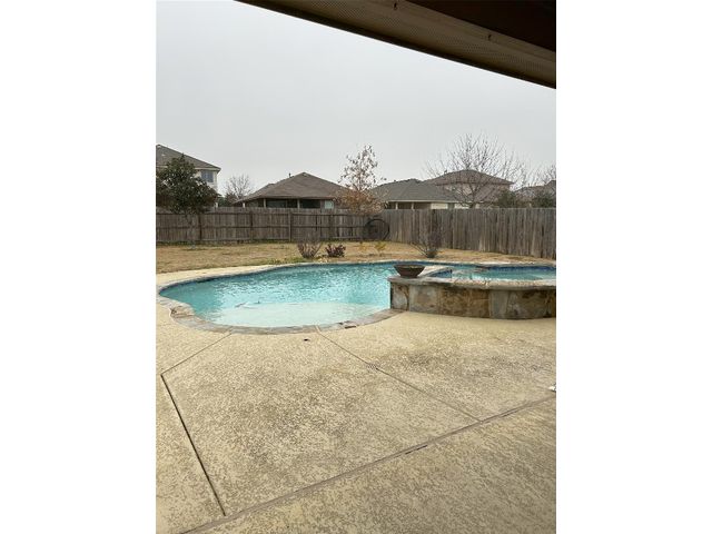 Great one story home with pool/spa and large lot. This is one of the larger lots in the neighborhood and easily accommodates the beautiful pool/spa built in 2016 by Anthony Sylvan and has a covered patio with extra Koolcote patio area around the pool and a large spa with heater and remote pool controls. Owner has added several trees including flowering Crepe Myrtles and a sweet smelling Magnolia tree as well as two shade trees and hardy rose bushes in front and back. Beautiful open floor plan with resilient wood-look tile throughout except for neutral carpeted bedrooms. Lots of natural light and charming arched accents in the family room, kitchen and dining area. Granite in kitchen and bathrooms and a convenient double oven and built in microwave and large pantry. Master bath has a fabulous oversized shower, double vanity and large walk in closet. Lots of upgrades in this house when it was built including flooring, countertops, cabinets, lighting package, appliance package, master bath shower, both bathroom tile options and water softener and purifier. New roof in September 2023, small neighborhood of homes on the street all built in 2014/2015, sidewalks with community benches/common area. Sit on the cute front porch or relax on the back patio as you listen to the pool waterfall and watch the sun set. Owner/agent.