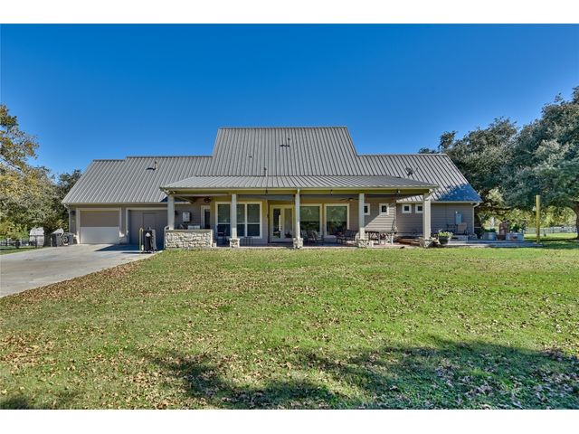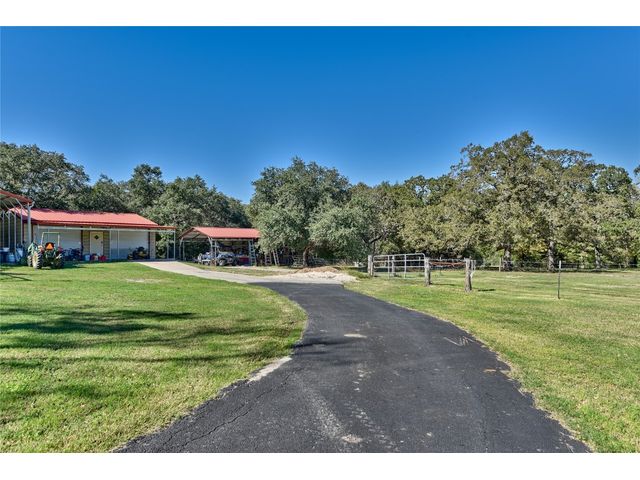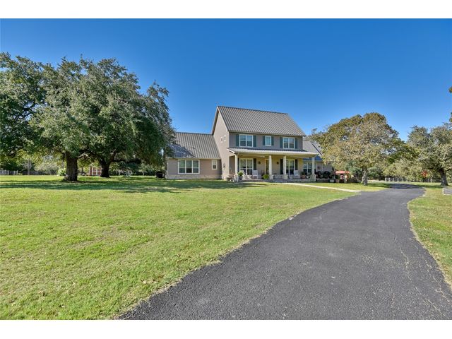 This custom-built, four-bedroom, three-bathroom, 2737 sq ft (per builder) home epitomizes countryside luxury sitting on just over 12 acres. The home boasts a chefs kitchen and open living space. Upon entering, youre greeted with a grand entrance and formal dining. Spacious mudroom/laundry room right off the heated and cooled garage and oversized pantry. A spacious primary suite featuring a grand ensuite bathroom retreat with two oversized closets. Outdoors you will find extravagant porches and an outdoor kitchen great for entertaining. This park-like property features two well-fed, stocked ponds and a meandering dry creek. Additional features include two metal buildings, two outbuildings, an in-ground garden, RV cover with a 220 amp plug, and above ground pool. Nestled within the property are an abundance of live oak, pin oak, and water oak trees.
