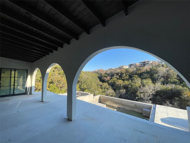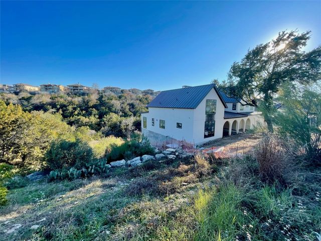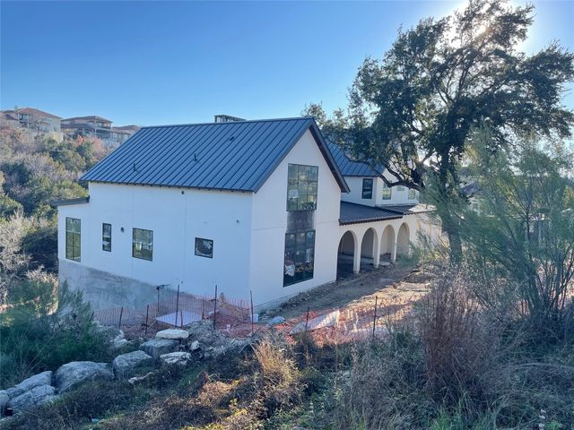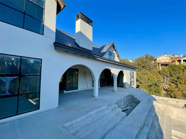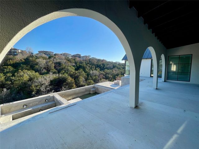 Welcome to 24 Water Front Ave, a captivating residence blending Santa Barbara style with timeless design, crafted by award-winning builder Tod Arbogast & his team at Arbogast + Smith Custom Homes. This exquisite custom home was just completed and is nestled in the exclusive gated enclave of Water Front in Lakeway, & perched on a canyon, the estate offers breathtaking panoramic views. The back veranda, overlooking the infinity-style pool cascading into the canyon with live water flowing to Lake Travis just 800 feet away, provides an unparalleled setting. Step inside to discover a spectacular open interior that seamlessly extends to outdoor amenities, including a pool, spa, and a covered patio for alfresco dining and leisurely hours. Glass doors from the kitchen, breakfast room, great room, and primary suite create a fluid connection between indoor and outdoor spaces, elevating the experience of casual luxury. This extraordinary home boasts custom craftsmanship, functional spaces, and a vast open living concept framed by a sea of glass. The Chef's gourmet kitchen, equipped with Thermadore appliances, oversized granite island, seamlessly integrates with the inviting family room, showcasing stunning outdoor views. Situated in the highly sought-after Lake Travis Independent School District, located near Rough Hollow, offering a Yacht Club, Marina, and the Canyon Grille for Lakeway residents' enjoyment. Lakeway features private golf clubs, an indoor and outdoor tennis club/fitness center at The World of Tennis, and sits on the shores of beautiful Lake Travis. Enjoy convenient shopping at the Hill Country Galleria, fine dining, and access to Baylor Scott and White Hospital and easy access to downtown Austin. Short drives lead to breweries, wineries, distilleries, festivals, and leisurely explorations through the hill country. Welcome to a lifestyle where luxury meets tranquility, welcome home to 24 Water Front on Lake Travis.