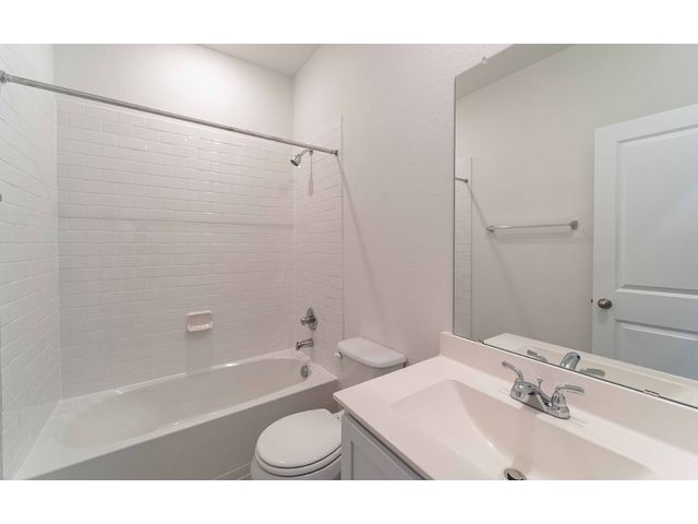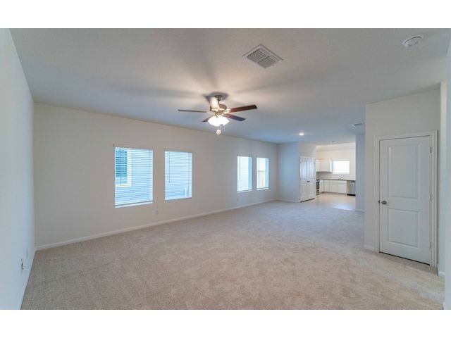 The well-designed Pecan plan has three bedrooms, two-and a half bathrooms & a formal dining room!