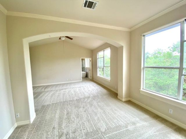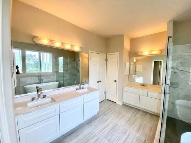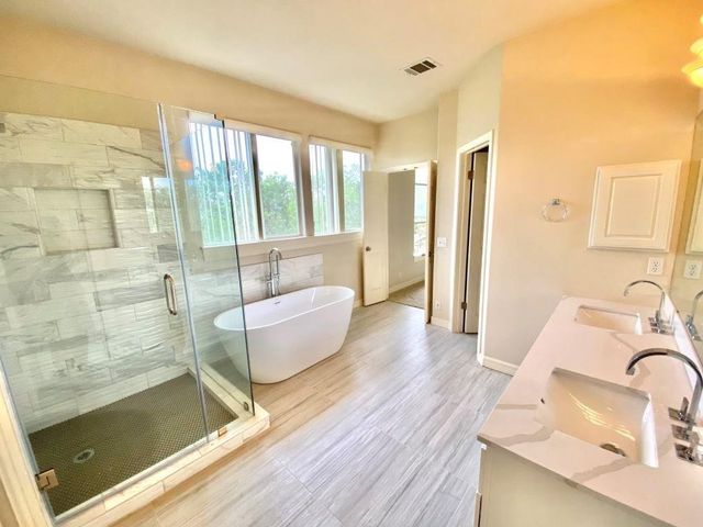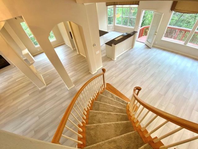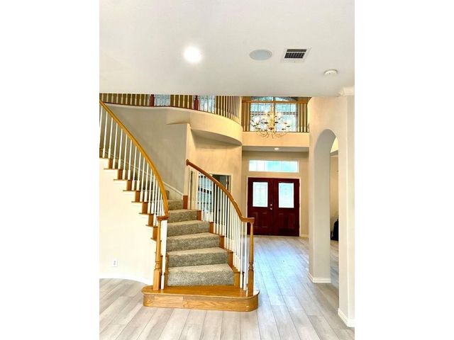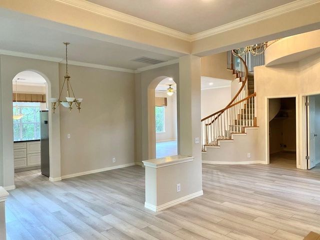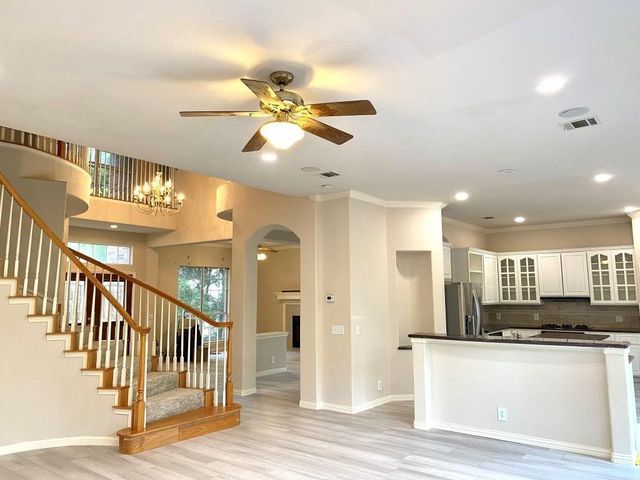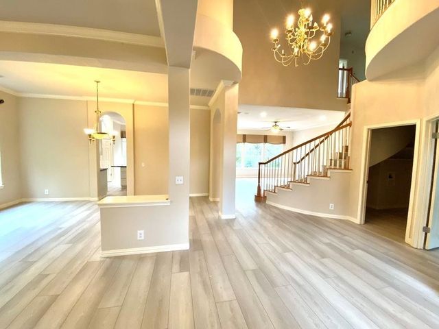 Step into luxury and modern living in this renovated residence with soaring, airy high ceilings and an open floor concept. Located in a tranquil neighborhood with beautiful view, this 4-bed, 3.5-bath home invites you to experience the perfect blend of style and comfort. The first floor features a two-story grand foyer, home office, formal living room with gas fireplace, formal dining room, eat-in kitchen open to the family room, a newly renovated powder room, and laundry room/mudroom. An oversized deck/patio backs onto a greenbelt, creating a peaceful oasis for relaxation and outdoor activities. An elegant sweeping staircase leads to the second floor which boasts an expansive primary suite with sitting area, vaulted ceilings, renovated bathroom with three vanities, separate tub and shower, and a vast walk-in closet. Across the hall lies two kids’ bedrooms which share a double-vanity bath, and a second floor lounge area overlooking the grand foyer and family room. Connected to the lounge area is a large in-laws suite, perfect for hosting guests. Zoned for the coveted Laurel Mountain, Canyon Vista, and Westwood schools, this residence also offers an exceptional education for your family. Come see this exceptional property today and don't miss the opportunity to make 10727 Cassia Dr your new home!