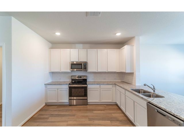The charming Mesquite plan boasts three bedrooms, two-and a half bathrooms & a large dining room!