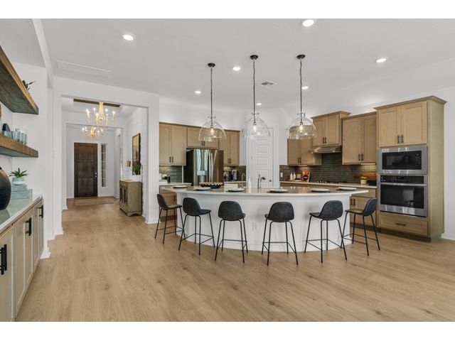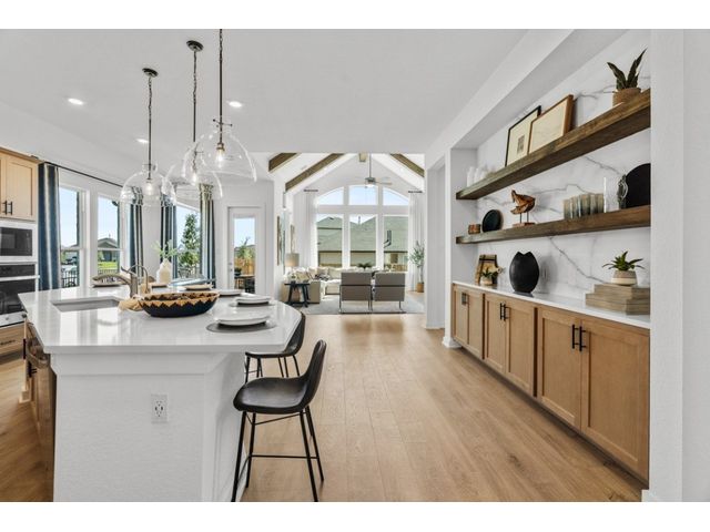 Highly sought-after one story Model Floor Plan! The McKenna is an open concept home with beautiful curb appeal! Three Bedrooms, 2.5 Baths, with flex room and 3-car garage. Situated on a well-insulated interior homesite in the Master Planned Community of Carillon. Home features upgraded flooring and upscale finishes! Large center kitchen island with quartz countertops overlooks the family room for easy entertaining. The kitchen also features a single basin sink, upgraded cabinets and hardware, built-in hutch, and undercounter lights for a designer look and feel! Large primary suite features an ensuite bath with dual vanities, large walk-in shower, & passthrough to utility room makes laundry day much easier! Game Room/ Flex Space offers additional private living area or entertainment space! This home is MOVE-IN READY! Ask about current incentives.