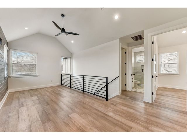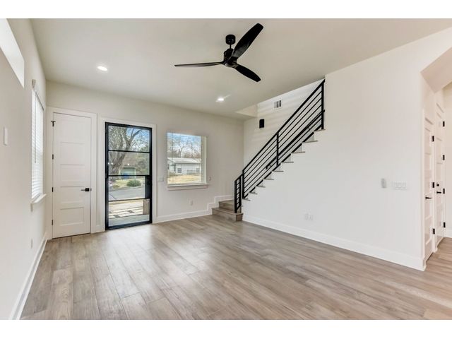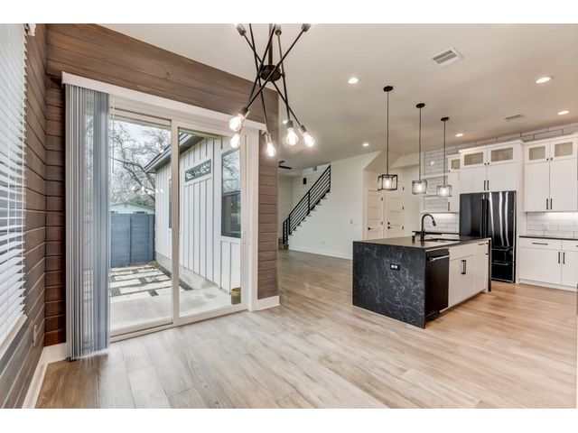 Contact me today to see this beautiful, contemporary, brand-new build! The curb appeal is stunning. This home sits like a single-family home, as the two units have no shared elements, no HOA Fees and separate fenced in yards. When you walk into the open living and kitchen area, this space will leave you speechless, with the high ceilings, tons of natural light, and upgraded finishes. Super modern, upgraded granite countertops, with a waterfall design on the island. The island also has built-in cabinets and USB ports in the outlets. Black stainless-steel Z-Line appliances, refrigerator included, and a microwave drawer built into the lower cabinets allows for a cleaner look above. Additional features; spray-in foam insulation, tankless gas water heater, automatic sprinklers w/rain sensors, and pre-wiring for cameras and speakers. Primary suite on the main level, with an amazing, upgraded bathroom, featuring floating cabinets, double vanity, and a oversized shower with luxury finishes. The upstairs loft area could be utilized as a secondary living room, office space, flex area, playroom, etc.! The possibilities are endless. Which leads to the laundry room, including abundant countertop space, as well as custom cabinetry, and a utility sink. The second level also features the two other bedrooms and two full bathrooms, allowing ample space for a family or for visiting guests. Location! Location! This home is less than 15 minutes to Downtown Austin, Zilker Park, and Austin Bergstrom International Airport. You can also get to the Domain in 20 minutes, via Mopac