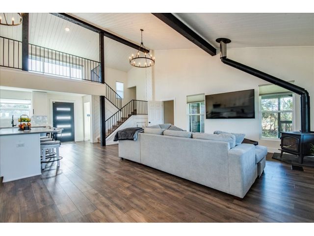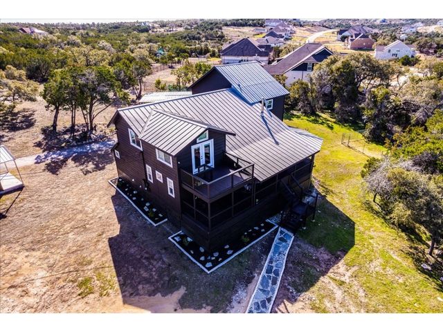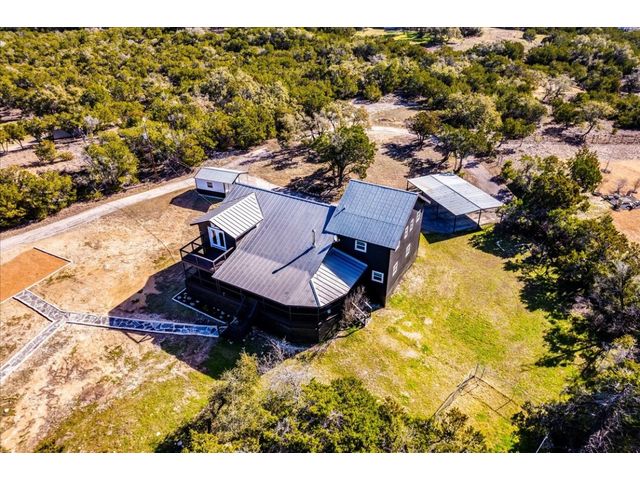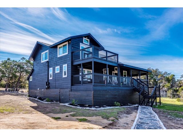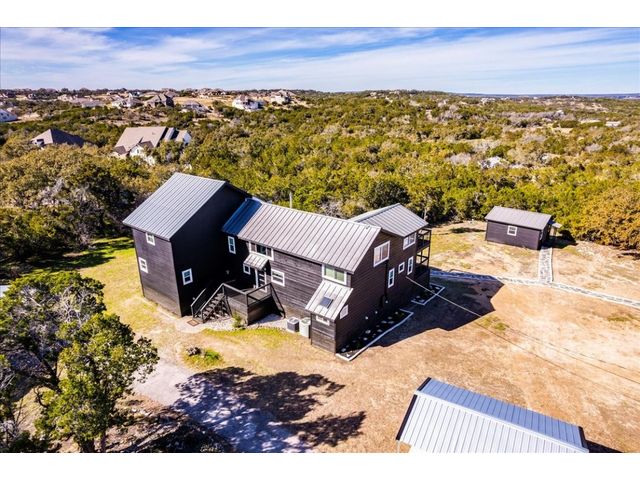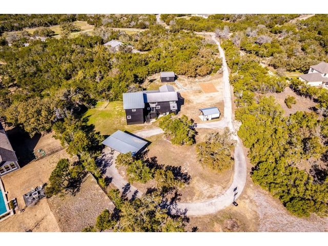 Discover the epitome of Texas Hill Country living in this fully renovated home on 3 acres in the acclaimed Dripping Springs ISD. Soaring high ceilings bathe the interior in natural light, creating a bright and inviting atmosphere. The well designed kitchen; with all new stainless steel appliances, large center island, sufficient cabinet space and two pantries, opens to the spacious living room with wood burning fireplace. You will also find the oversized primary suite on the main level which features a spa-like bathroom with rainfall shower head, dual vanity and walk-in closet. Up the stairs you'll find two bedrooms both with their own en-suite bathroom. Continued upstairs is a half bathroom and another living space perfect for kids playroom, home theatre or "man cave"! Outside you'll enjoy quiet evenings on the large wraparound porch and sunsets from the second floor balcony. Also on the property is a studio guesthouse complete with half bath, perfect for visiting family and friends or potential STR. Conveniently located between Austin and Dripping Springs and close proximity to shops and restaurants. This home is truly a must-see!!