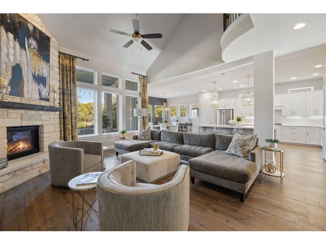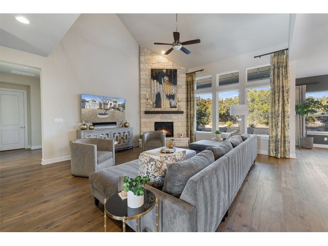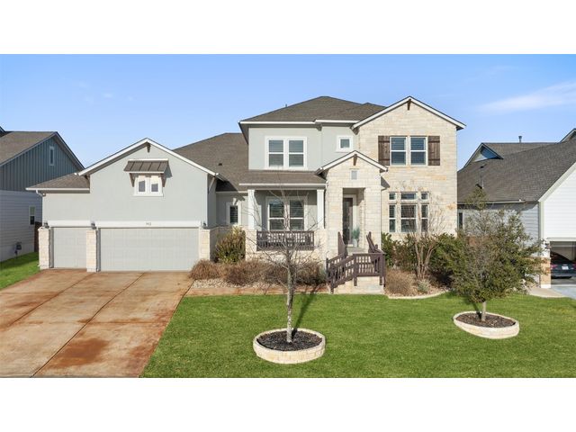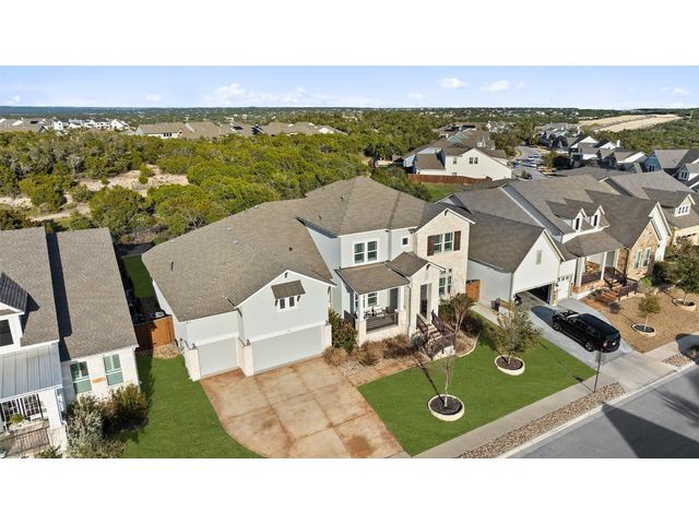 SELLER FINANCING AVAILABLE - PROFESSIONALLY DECORATED AND FURNISHINGS ARE NEGOTIABLE - Welcome to this beautiful residence in the Headwaters community of Dripping Springs, spanning over 4,000 square feet. This elegant home features 5 bedrooms, 4.5 baths, and a spacious game room, offering versatile living spaces. Upon entering, the soaring ceilings and warm finishes immediately capture your attention, while rich wood floors add an inviting ambiance. The front office space is open-concept, perfect as a private workspace or a formal dining area, adapting to your needs. At the heart of the home, the stunning kitchen is a chef's dream. It boasts stainless appliances, a large quartz island, and stylish cabinetry. The kitchen flows seamlessly into the family room, making it ideal for hosting and daily living. The primary retreat, a luxurious oasis, promises a perfect escape from the hustle and bustle of everyday life. Here, elegance and serenity combine to create a space where relaxation reigns supreme. The home's practical design includes 2 ensuite bedrooms on the main level, ideal for guests or multi-generational living. Upstairs, 3 serene bedrooms provide quiet retreats. The expansive game room, currently a bedroom, showcases the home's flexibility, easily serving as a recreational space or 6th bedroom. One of the home's most remarkable attributes is its location, backing to green space. This setting offers privacy and tranquility, making it a perfect retreat for those who love nature's beauty. A 3-car garage further enhances this property. The Headwaters community offers amenities like a resort-style pool, Wi-Fi café, and fitness center, all in the Dripping Springs school district. This community blends green spaces and outdoor activities, offering a lifestyle. Located conveniently near Austin, this home melds the tranquility of the Hill Country with city accessibility. A perfect blend of comfort, style, and convenience.