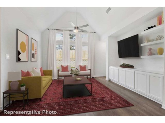 MLS# 3973044 - Built by Highland Homes - Ready Now! ~ This home lives large! This beautiful home features a wide entry that spills into an open dining and family room with high ceilings. Stainless steel appliances are the focal point of the gourmet kitchen. Two bedrooms up front share a bath with an additional half bath for guests. The covered patio offers views of the huge back yard on a large corner homesite!