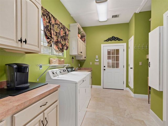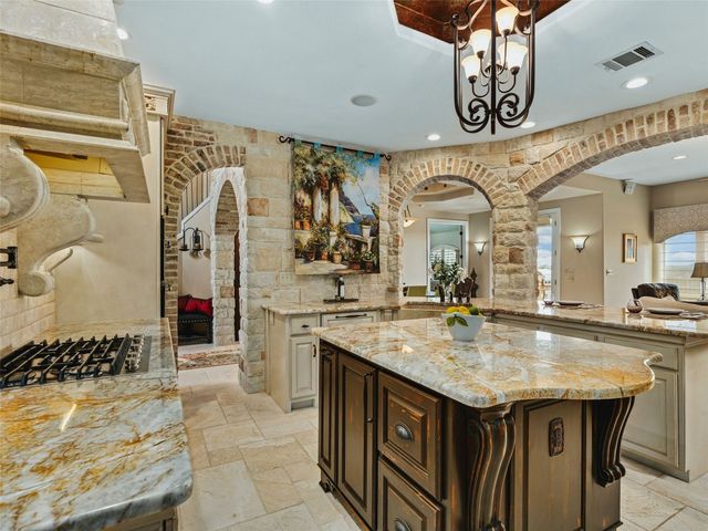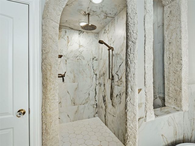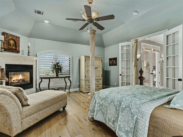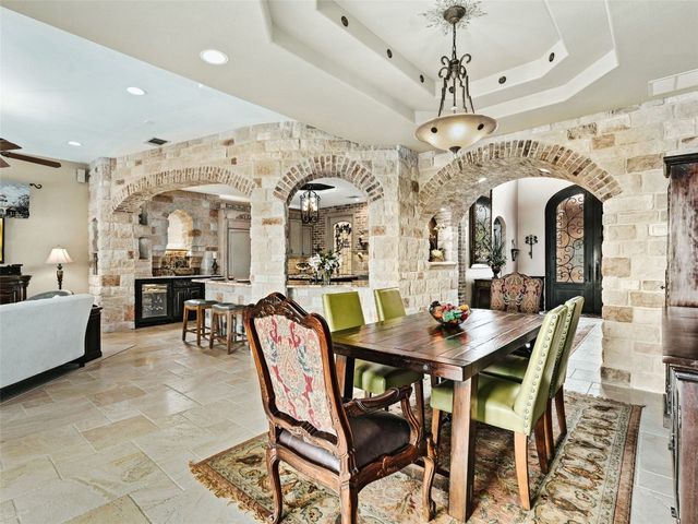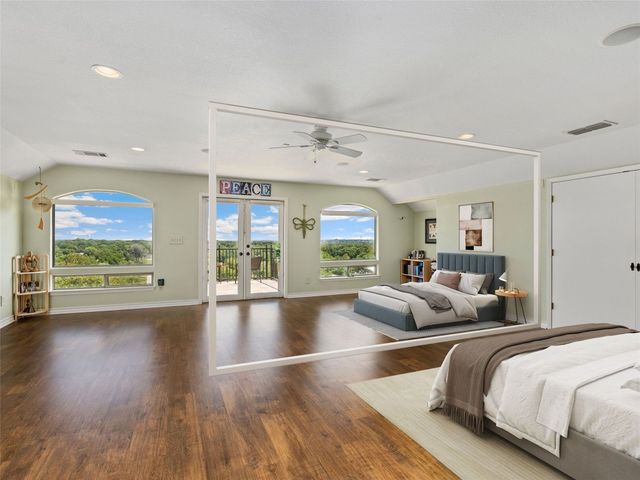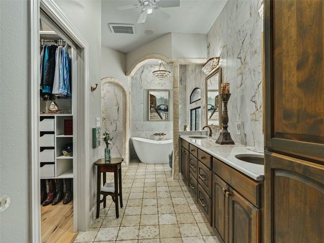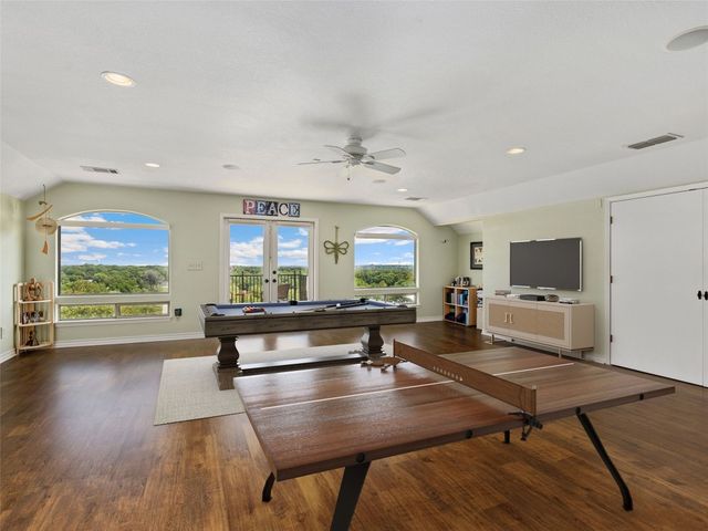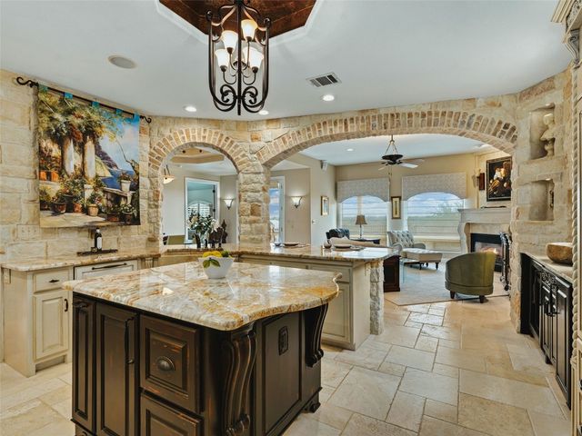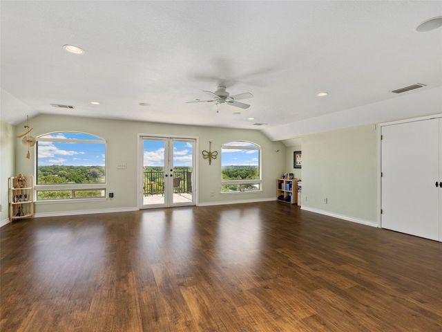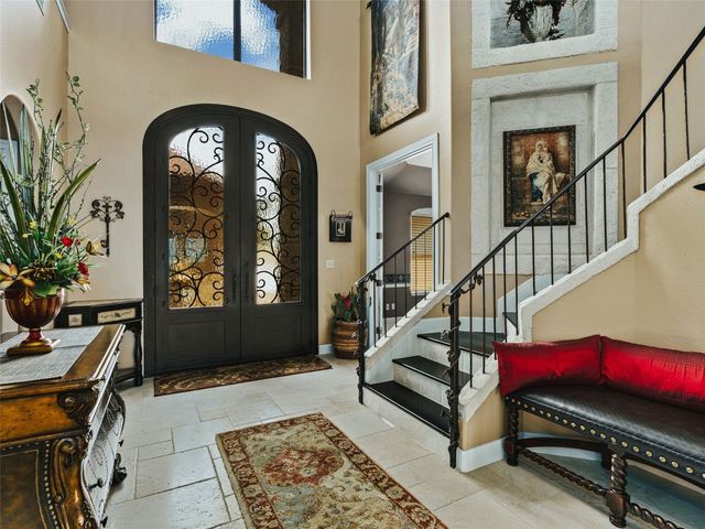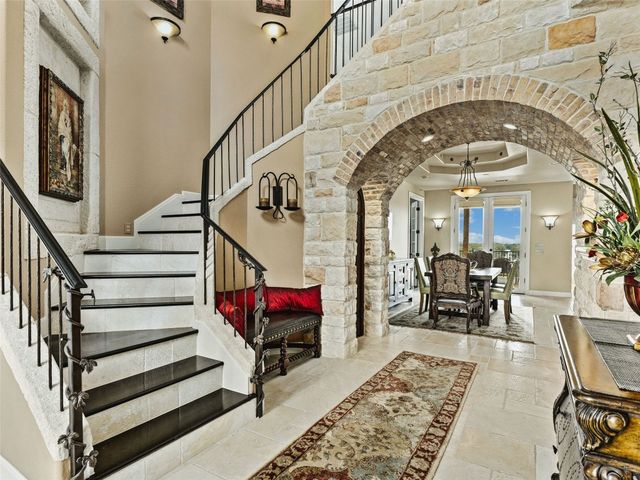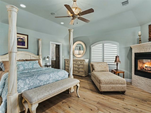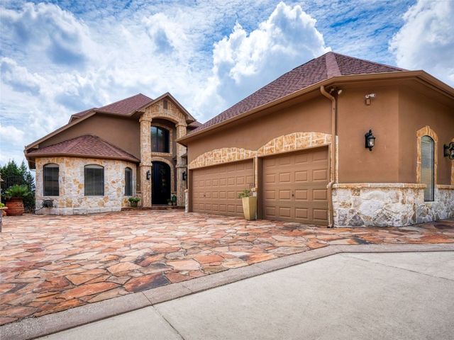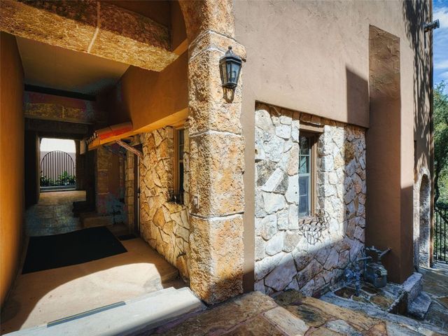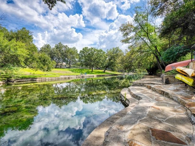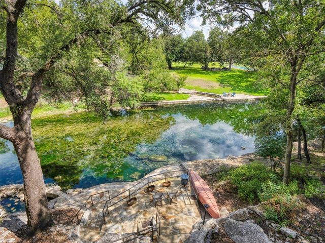 Tuscan inspired river villa estate on the beautiful Comal Springs. Beautifully situated on the hill side of the river offering sprawling views of New Braunfels and multiple patios down to the river with Island privileges. The main home was built for entertaining with a gourmet kitchen and an open living and dining area that flows to the large outdoor patio. The first floor is complete with an office and primary suite with a gorgeous updated bathroom and walk in closet. The bathroom was updated and redesigned with beautiful chandelier lighting, tile floors, and walls, including the large shower and a slipper tub. The primary closet was redesigned with a new floor, pull down hangers, built in shelving, drawers and cabinets. The master bedroom flooring is new along with the wood shutters. A versatile upstairs space with full bathroom and an additional patio can be personalized to add another few bedrooms, media room, or second living area. Steps down from the main home, find the separate guest cottage originally built in 1938. The cottage has been remodeled with updated wiring, thermopane windows, paint, and new bathroom. Other features include a private gated entry, plentiful parking along the landscaped entry drive, three car garage, and walking distance to Landa Park. The primary bedroom is located on the main floor, and the second bedroom is located in the guest's cottage house. Plans available to add two additional bedrooms on the top floor. This property offers a truly wonderful opportunity to own a New Braunfels gem.