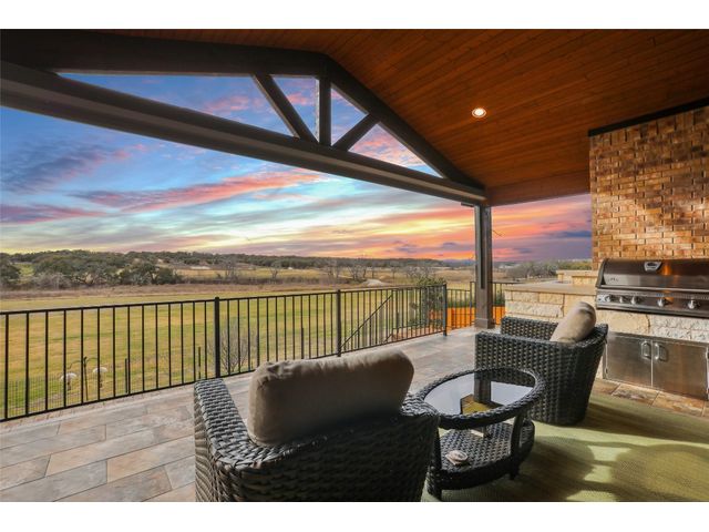Welcome to your dream home nestled in the picturesque, master-planned community of Caliterra in Dripping Springs,TX! This stunning 4-bedroom + study is the perfect blend of luxury, comfort & natural beauty just outside the door. This particular homesite offers a lifestyle of unparalleled nature & convenience. The spacious living room features a fireplace, high ceilings, oversized slider + fixed windows allowing natural light to pour in & leading to the outdoor space that invites you to embrace the breathtaking views of Onion Creek's greenbelt with custom, remote-controlled roller shades to ensure privacy & comfort. The chef's kitchen includes an expansive island, built-in appliances & a walk-in pantry. The 2 dining areas seamlessly connect to the kitchen, creating a perfect flow for indoor-outdoor entertaining. Step outside to the impressive outdoor living space where you'll be enchanted by the panoramic, exclusive views of Onion Creek & delighted by the finishes including tongue & groove detail in the soaring ceiling & an outdoor kitchen complete with a sink, grill & built-in smoker. In the primary bedroom the spa bath is a sanctuary of relaxation featuring a generous soaking tub, stunning herringbone tile in a large walk-in shower, 2 generous closets w/ built-ins, separate sink areas + a dedicated vanity space. The unique layout of this home offers versatility & privacy with 1 bedroom perfectly situated for a study, guest or living room & the primary bedroom tucked away in the back for ultimate tranquility. One of the secondary bedrooms offers an ensuite bathroom & all bedrooms have walk in closets. This home is equipped with modern conveniences including garage epoxy coating & a 240 installed for an electric car charger. Beyond your doorstep, Caliterra boasts the best amenities: The Front Porch, Hall, Grove, Cove pool complex, Treehouse, Back 40, Dock, Adventure Barn, Stage & more! Hike & bike trails showcase the careful preservation of the surrounding nature