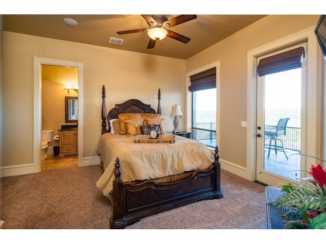 Exquisite custom home located in Mystic Shores at Canyon Lake offering 4 bedrooms, 4.5 baths, 1.5 story, open floor plan, designed for guests and all on 2 acres with expansive views of the 140 acre Nature Preserve. This home was built to capture the views from every angle as the views cannot be obstructed due to backing up to the nature preserve. Split floor plan with 3 bedrooms with 3 full ensuite baths down with a large game room and/or 4th bedroom with full bath is upstairs. Open kitchen to the living area with granite counters, double ovens and large island for entertaining guests to enjoy your views. The oversized back porch is fenced in for dogs or kids as well as the back yard is perimeter fenced with pipe rail. The backyard offers plenty of space for a pool and an additional garage/guest home could be added due to the acreage. 220 River Ridge is located on a coveted street offering Guadalupe Riverfront Homes, mostly on larger acreage giving you the utmost privacy from neighbors. Mystic Shores is a custom home community on the north side of Canyon Lake with Lake and River Access, 2 pool complexes, sport courts, on site RV/boat storage, walking trails and amenity center.