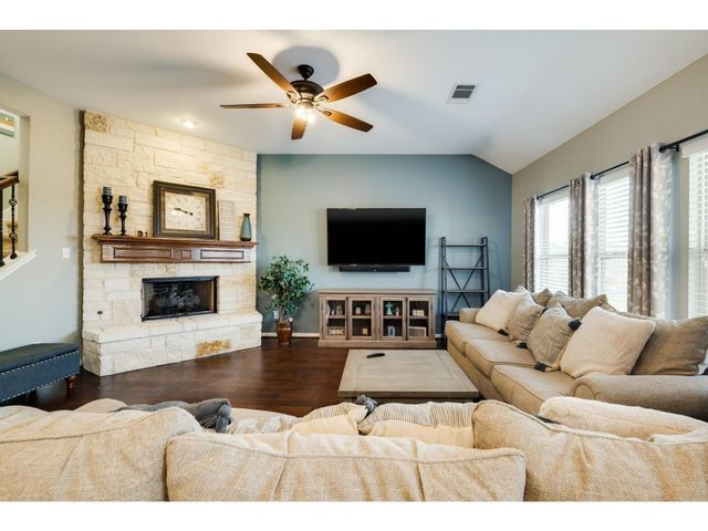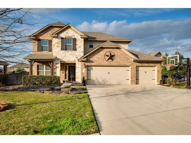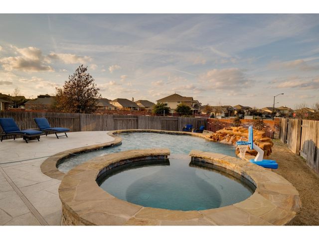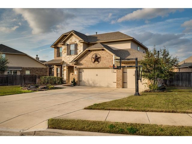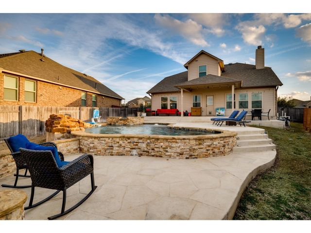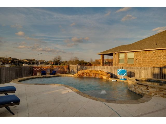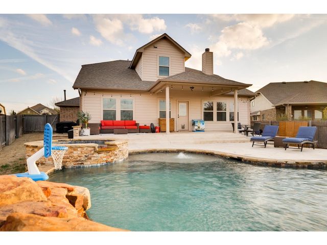 Stunning two-story home in the highly sought-after Teravista community! Resting on nearly a quarter-acre cul-de-sac lot, making it one of the largest properties in the neighborhood, this residence hosts 4 bedrooms including two primary suites, 3.5 baths, a dedicated home office, multiple living spaces, and an envious backyard retreat with an in-ground pool and spa. A charming brick/stone façade and a 3-car garage greet you as you arrive. Stepping inside you’ll soon find the dedicated home office to your left, where you’ll enjoy the ability to work from home while all bedrooms remain for their intended use. The main level primary suite features a relaxing garden tub, a dual vanity, a separate shower, and an expansive walk-in closet. The chef’s kitchen sits in the heart of the home, showcasing granite counters, built-in stainless-steel appliances, and abundant storage space. Upstairs, the second primary suite showcases french doors leading to its ensuite, equipped with a sizable walk-in shower and a large dual vanity. The second level is crowned by a versatile and spacious bonus room, ideal for a secondary living area, a game room, or any creative use that suits your lifestyle. The remaining two secondary bedrooms share a well-appointed full bath upstairs. A key standout feature of this home is the backyard retreat. Designed with relaxation and entertainment in mind, the in-ground pool/spa is wrapped in charming stonework, and multiple spacious patio areas surround the pool, allowing for lounge furniture, al fresco dining, or potentially adding a fire pit! The Teravista community offers unparalleled amenities, ensuring a lifestyle of comfort and recreation just beyond your backyard. From fitness centers to sports courts, pools with a splash pad and lap section, dog amenities, hiking trails, and fishing ponds, residents enjoy a wealth of options for year-round enjoyment. Don't miss the opportunity to make this extraordinary home yours in a prime Teravista location!