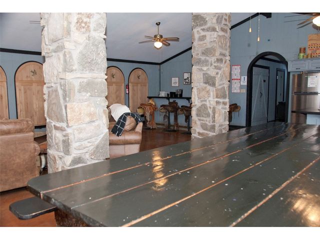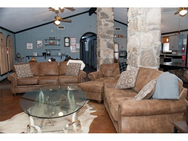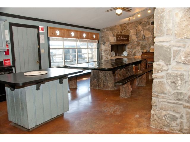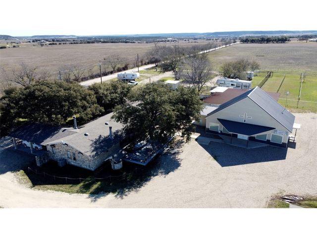 INCREDIBLY VERSATILE property! NO RESTRICTIONS! Privacy galore. Situated centrally between Stephenville, Hamilton, Meridian & Gatesville. Huge, beautiful oak trees. Has been a retreat center w/chapel & RV park. Can continue or could be event center, conference center, hunting lodge, expanded RV park, gun range, golf driving range, any combination, or your family's personal vacation spot. LODGE: inviting rustic bldg w/7501sf, sleeps 45 in 13 sleeping rooms w/9.5 baths. 5 other rooms for offices, workspace, storage, etc. Commercial kitchen w/gas ranges & plenty of workspace adjacent to large gathering/dining room w/2 fireplaces & serving bar. 2nd kitchen in large gathering space w/huge dining table, 2 fireplaces, coffee bar & room to sit/visit. Laundry room w/multiple W&D. Deck to rear shaded by huge oak tree. CHAPEL/EVENT ROOM (built in 2019): 1800sf of mostly open space w/stage, tall ceiling, storage & office. Seats approx 100. RV PARK: full hook-ups for 10 RVs (4-50amp, 6-30amp) restroom bldg w/showers, laundry facility/bldg, covered outdoor area. OTHER IMPROVEMENTS: outdoor recreational area bathroom bldg w/attached rec room, storage bldg, large barn, firepit, awning area, human foosball enclosure. Most FF&E convey. Ask Realtor for list of the FF&E that do not CONVEY. New roofs in 6/23. New well pump in 1/24. 6 HVACs. Due to business being church-related, income is not what typical owner could expect.