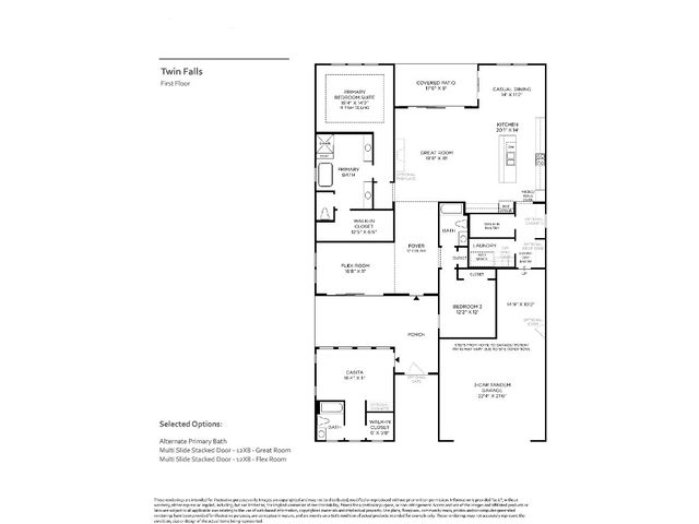 MLS# 3182962 - Built by Toll Brothers, Inc. - April completion! ~ The Twin Falls Hill Country is a spacious single-story home located in an active adult community with resort-style amenities. The private casita includes a full bath with walk-in closet and easy access to the front entry and flex room via a multi-slide glass door. The foyer boasts 12-foot ceilings and opens into the spacious great room. The gourmet kitchen features a center island, ample cabinets and counter space, a huge walk-in pantry, and casual dining area. Multi-slide doors open the great room to the covered backyard, which expands living and entertaining space outdoors. A secluded secondary bedroom has convenient access to the full bath across the hall and the laundry room. The primary bedroom is enhanced with a tray ceiling and features a lovely bathroom with separate tub and shower, dual vanities, and generous walk-in closet. Disclaimer: Photos are images only and should not be relied upon to confirm applicable features.