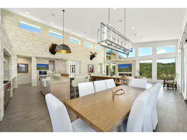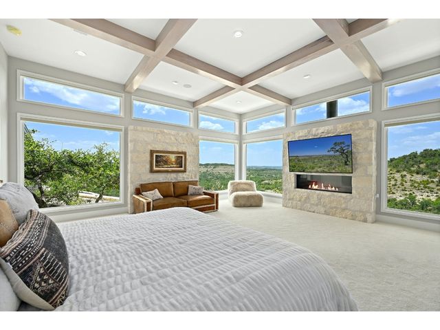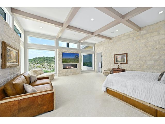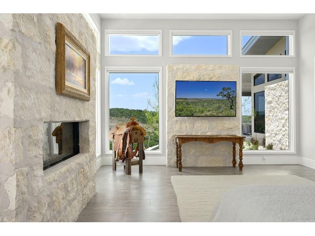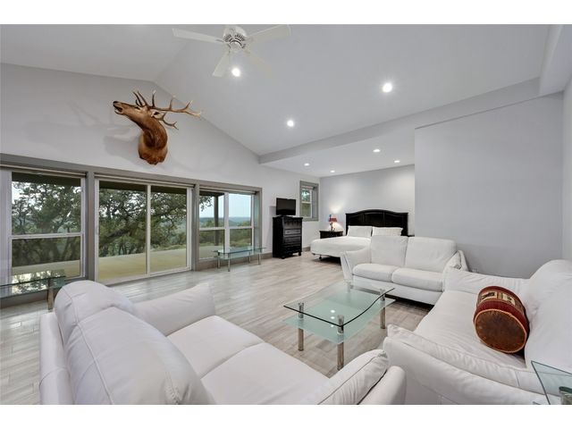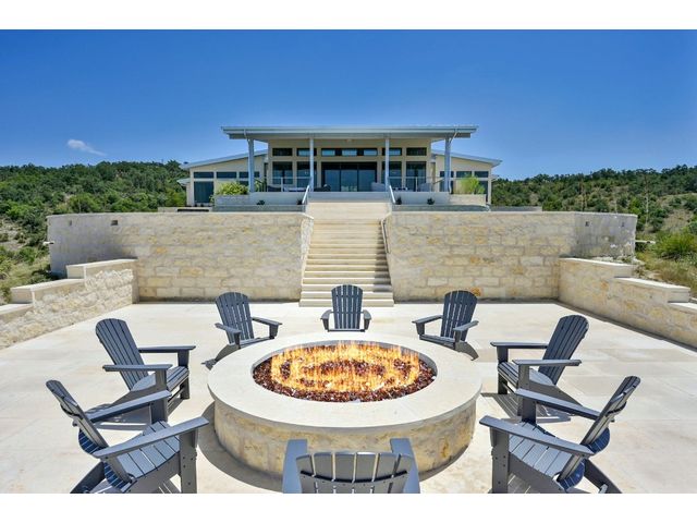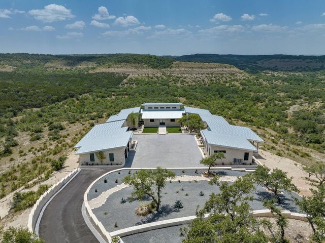Introducing an extraordinary Hill Country haven in Wimberley that transports you to a world of refined luxury and serenity. This property sprawls across 50 fully fenced acres with the main home perched on a beautiful mesa overlooking the Blanco River Valley - A natural spectacle that sets the stage for a residence like no other. Located minutes from downtown Wimberley, this ranch provides easy access to Austin, Kyle, Dripping Springs, New Braunfels, San Marcos, and San Antonio. The small town of Wimberley is situated where Cypress Creek and the Blanco River meet, amidst rolling hills and sprawling countryside. The main residence embraces 360-degree views of the valley-featuring two owner's suites and an inviting living room with a limestone-encased fireplace, the home bathes in natural light throughout. The kitchen is a chef's dream, complete with a built-in Sub-Zero refrigerator, Wolf range, Miele espresso machine, Wolf microwave, a large center island, dedicated veggie preparation area, and a brilliance-clear-cube ice machine. The meticulously landscaped yard features a private hot tub, an inviting fire pit, and a covered outdoor patio, providing the ideal space for entertaining guests. The lush turf adds a touch of sustainable greenery to the surroundings, creating a tranquil ambiance that beckons you to unwind and savor the moment. The guest house offers comfort and refinement with its spacious layout encompassing two bedrooms, two baths, and a gracefully designed living space and kitchen - the independent home spans an impressive 1,366 square feet. Elegance harmonizes effortlessly with functionality, creating an inviting haven for guests. The living area extends outdoors to a serene back porch, providing a perfect vantage point for the stunning views of the valley below and beyond. BUNKHOUSE: 1 bed, 1 bath, w/ kitchenette, 1,229 SF. BARNDOMINIUM: 1 bed, 1 bath, w/ kitchen, 800 SF. INSULATED WORKSHOP: 1,600 SF