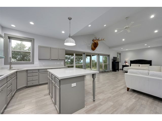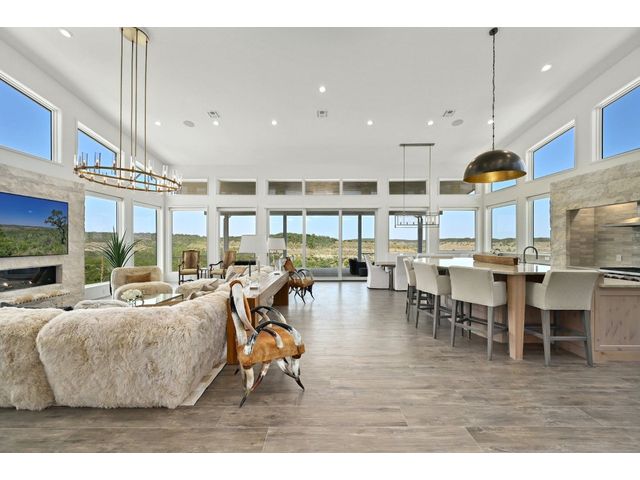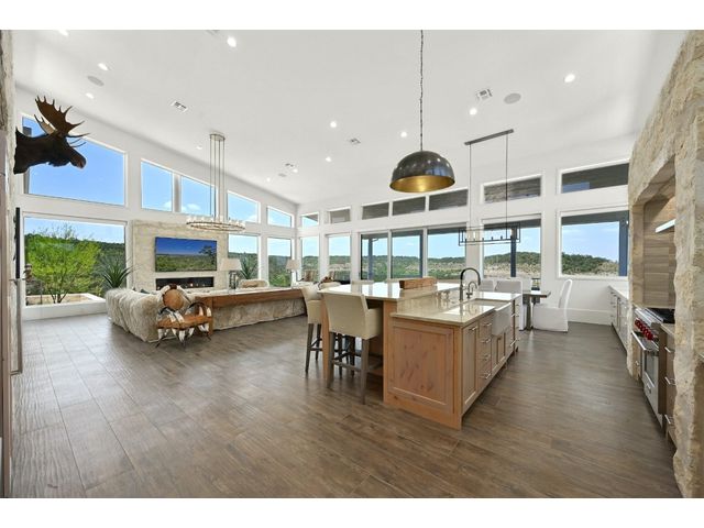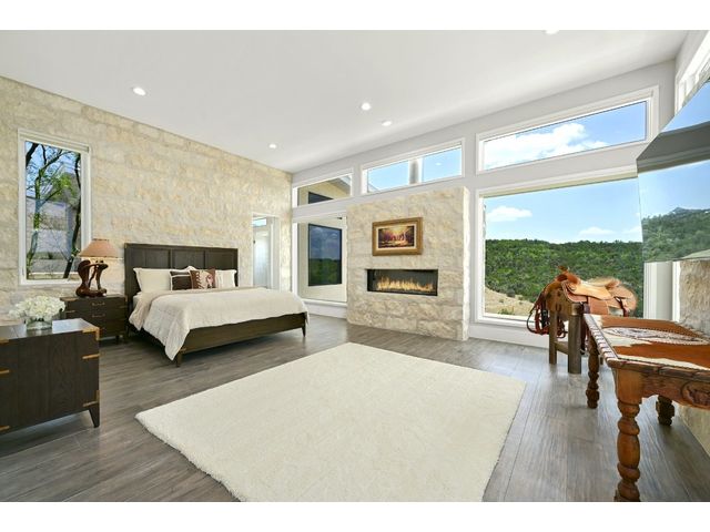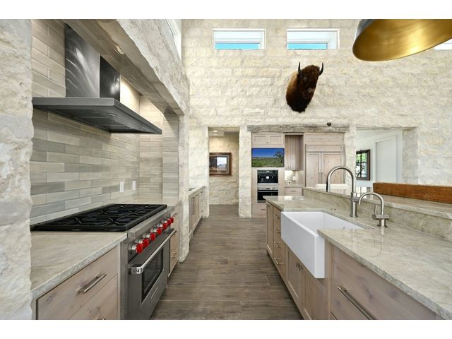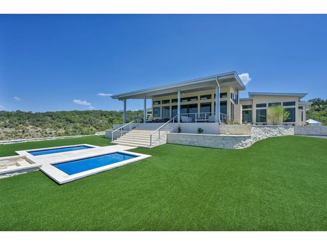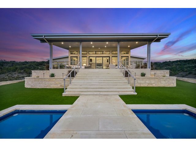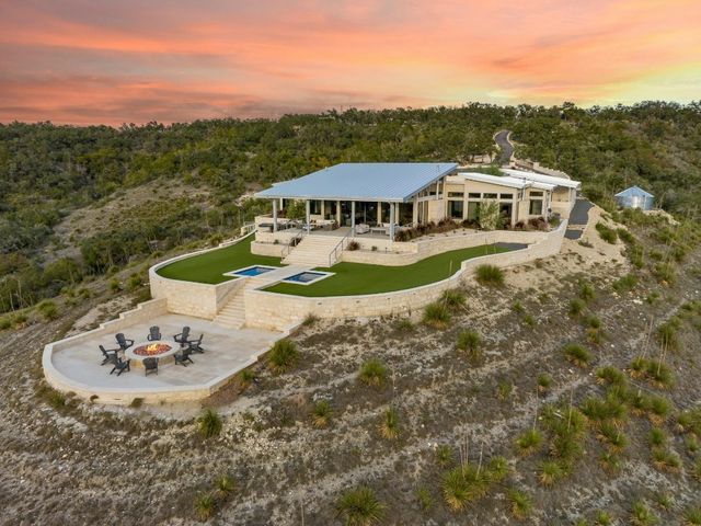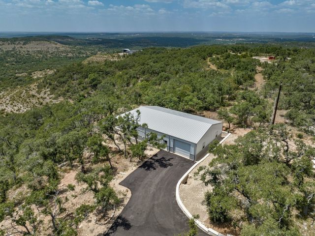 Introducing an extraordinary Hill Country haven in Wimberley that transports you to a world of refined luxury and serenity. This property sprawls across 50 fully fenced acres with the main home perched on a beautiful mesa overlooking the Blanco River Valley - A natural spectacle that sets the stage for a residence like no other. Located minutes from downtown Wimberley, this ranch provides easy access to Austin, Kyle, Dripping Springs, New Braunfels, San Marcos, and San Antonio. The small town of Wimberley is situated where Cypress Creek and the Blanco River meet, amidst rolling hills and sprawling countryside. The main residence embraces 360-degree views of the valley-featuring two owner's suites and an inviting living room with a limestone-encased fireplace, the home bathes in natural light throughout. The kitchen is a chef's dream, complete with a built-in Sub-Zero refrigerator, Wolf range, Miele espresso machine, Wolf microwave, a large center island, dedicated veggie preparation area, and a brilliance-clear-cube ice machine. The meticulously landscaped yard features a private hot tub, an inviting fire pit, and a covered outdoor patio, providing the ideal space for entertaining guests. The lush turf adds a touch of sustainable greenery to the surroundings, creating a tranquil ambiance that beckons you to unwind and savor the moment. The guest house offers comfort and refinement with its spacious layout encompassing two bedrooms, two baths, and a gracefully designed living space and kitchen - the independent home spans an impressive 1,366 square feet. Elegance harmonizes effortlessly with functionality, creating an inviting haven for guests. The living area extends outdoors to a serene back porch, providing a perfect vantage point for the stunning views of the valley below and beyond. BUNKHOUSE: 1 bed, 1 bath, w/ kitchenette, 1,229 SF. BARNDOMINIUM: 1 bed, 1 bath, w/ kitchen, 800 SF. INSULATED WORKSHOP: 1,600 SF