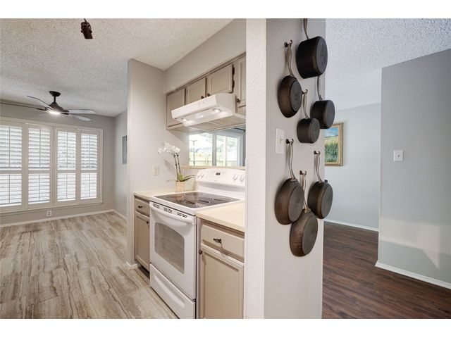 Great price and amazing Location - This delightful corner unit is nestled in a convenient and sought-after location just minutes from Arboretum, Domain, and downtown Austin. Situated on the first floor, this home offers easy accessibility without the hassle of stairs. The windows, furnace, and A/C have all been thoughtfully replaced, ensuring optimal energy efficiency and a serene living environment. The entire unit has received a fresh coat of paint, both bathrooms have been tastefully updated, and plantation shutters adorn every window, casting a warm and timeless glow. The kitchen extends its charm with an additional space, perfect for a home office or creative haven. Outside, is a private patio ideal for morning coffee, leisurely reading, or al fresco dining. The complex offers a park-like setting across nearly 15 acres, featuring a pool, tennis courts, and an abundance of live oaks. Unit comes with a designated parking spot just steps from the front door but there is ample parking throughout the complex. A refrigerator and stackable washer/dryer are included, and HOA dues include hot water. As a bonus, this residence falls within the highly-rated school zones of Hill, Murchison, and Anderson.
