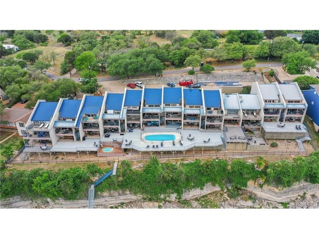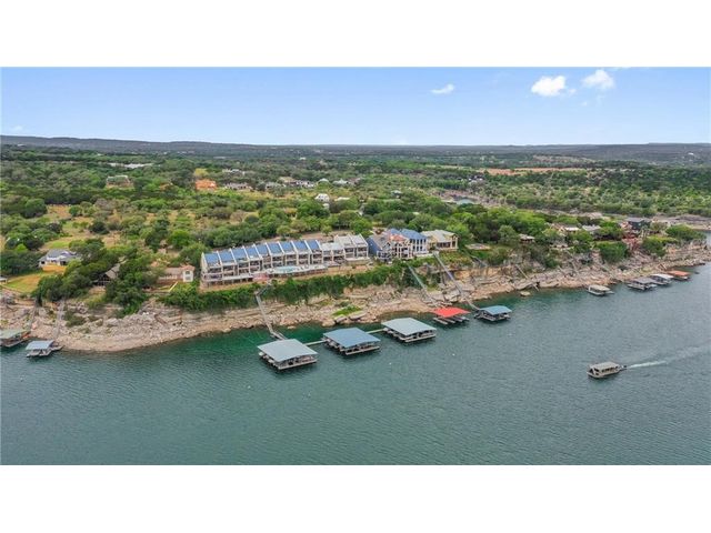Welcome to the lake! BIG Lake Travis and Hill Country Views! Rarely do these waterfront condos come on the market! This completely Renovated one-bedroom, one-bathroom unit is just steps away from the private community pool and Hot Tub. The seller is an interior designer; you will notice her tasteful renovation choices. The boat slip IS included in the sale and is located on the left end of the middle section of the docks. See the Renovation list in the attachments. Live the full-time resort life; make it your weekend home or short-term rent it. Skies the limit. There was a paid assessment for exterior paint and updating. New Pool Deck. PRIVATE BOAT SLIP INCLUDED Low HOA Fees cover Boat Dock Maintenance. MUST SEE. SELLER will also consider a long-term Lease—minutes to Pace Bend Park, Briarcliff Marina, and the Lighthouse Restaurant.