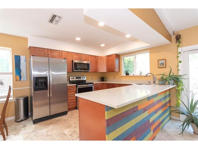 Charming 4 bedroom home in the highly sought after Scenic Brook subdivision. Upon entry you will find travertine tile flooring and one of the secondary bedrooms that would work well as a home office. The recently remodeled kitchen is open to the family room and includes beautiful new cultured quartz countertops, unique wood detailing, cherry cabinets, and stainless steel appliances. The large backyard is perfect for entertaining and enjoying the upcoming fall nights. There is plenty of room to add a playscape or fire pit, or even a storage shed! Location is convenient to several major roads such as Hwy 290, SH-71, Mopac, William Cannon, etc. and is in close proximity to Downtown Austin as well as all of the dining and shopping in the Sunset Valley, Oak Hill, and Arbor Trails shopping centers. Also a short drive to Target and the HEB on Hwy 290 and 1826. Feeds into AISD schools Patton, Small, and Bowie.
