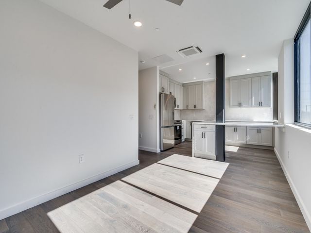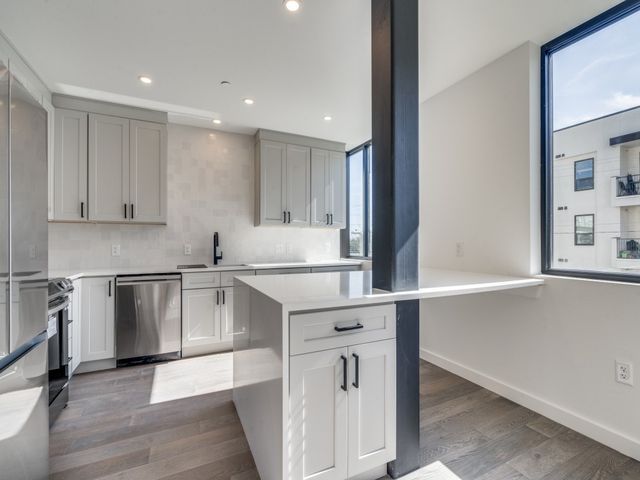 With four brand new 1-bed units to sell, the Seller is offering this unit at a price lower than other six-year-old units in the building. They have a preferred lender as well who will work with you to get the lowest possible rates and also pay your title policy! This unit features downtown views through the expansive windows in the living room, has white oak flooring throughout, boasts a highly functional kitchen, quartz countertops, zellige tile backsplash, brand new Samsung appliances, all complemented with a large eat-in dining area that’s perfect for entertaining guests or working from home! The unit also offers generous storage with a pantry and coat closet, maximizing every square inch. The primary bedroom is ample, has a walk-in closet, and across the hall is an oversized bathroom with a large vanity, walk-in shower, and new Samsung stacked washer/ dryer included in the unit. Unlike other units in the building, your unit comes with one reserved, covered parking space behind the privacy gate, with additional reserved parking spaces available, and the option of a 60+SF air-conditioned storage unit located on the 1 st floor. Fourth and is a mixed-use low-rise walking distance to restaurants, stores (like Target and Whole Foods), breweries, and so much entertainment that East Austin has to offer. The building offers multiple amenities including a full-time manager onsite, security, gym, pool, outdoor lounge, private guest suites, dog wash station, club room, conference room, package lockers, andendless green features. Be the first person to call this unit home!