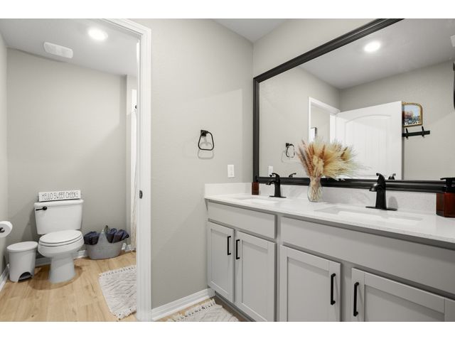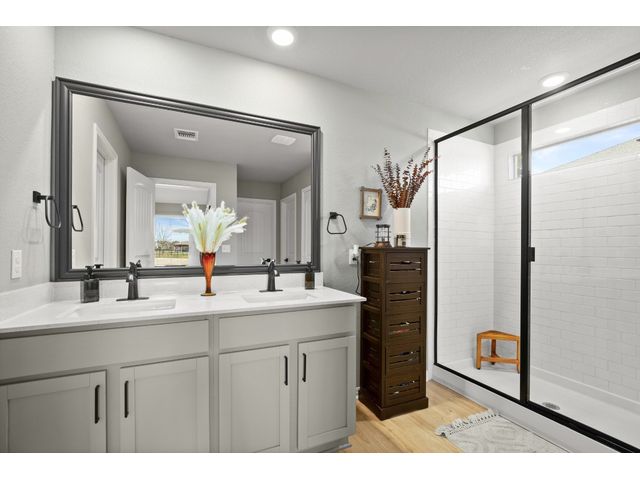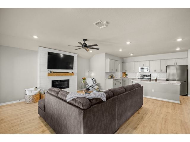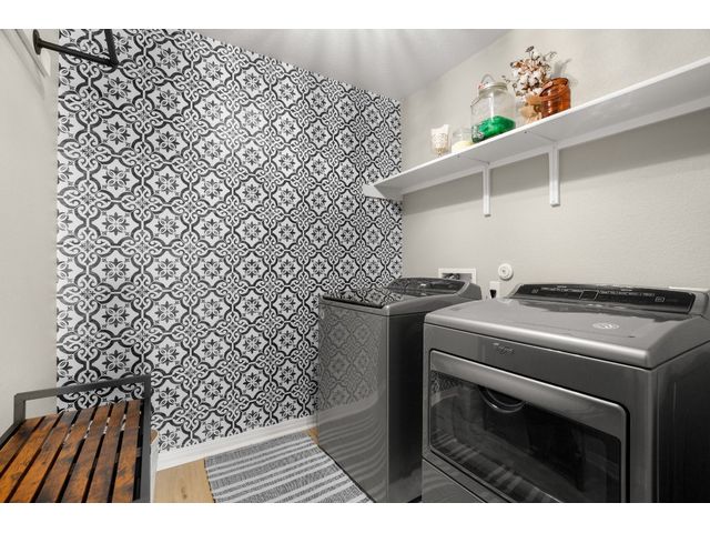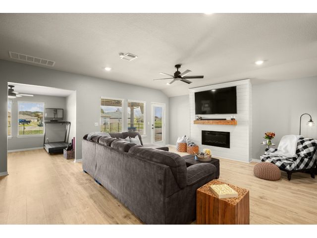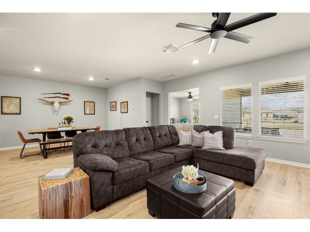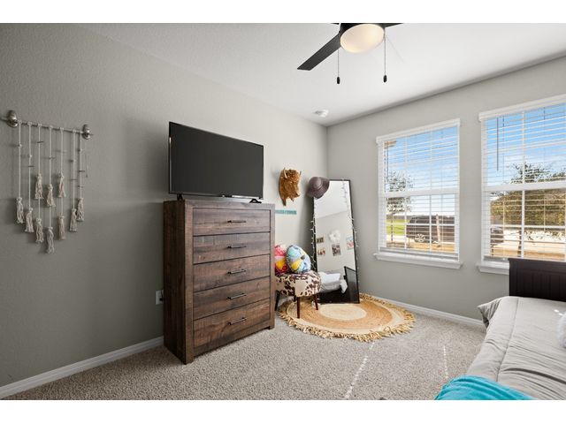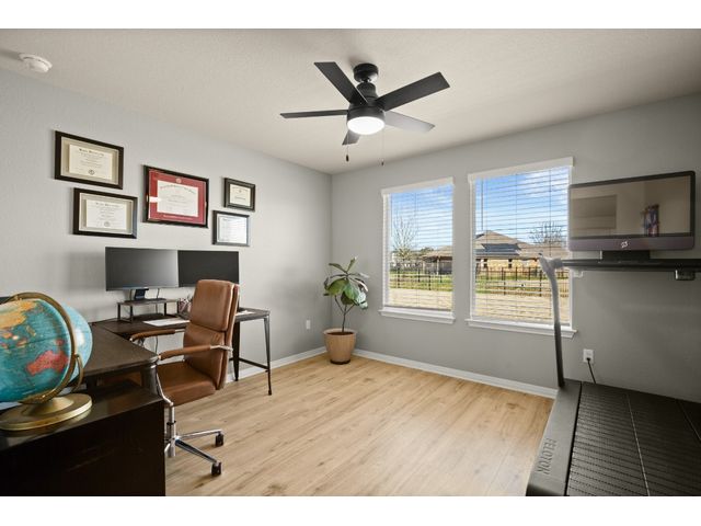 Looking for a beautiful nearly-new customized home located in the prestigious Colovista Country Club? A thoughtfully designed home with a luxurious open floorplan, lovely white oak flooring, shiplap details, high end modern fans and fixtures, real wood accents, canned/recessed lighting, 9+ ft ceilings for a feeling of elegance and space, and a plethora of light throughout the home! A wide and inviting foyer area leads to the open kitchen, living, dining, bar seating, and office. The KITCHEN features modern shaker cabinets, updated hardware, all stainless steel appliances, walk-in pantry, large basin sink, gooseneck faucet, huge kitchen island, stone countertops, and bright/modern subway tile backsplash. Off the oversized living and dining rooms, the OFFICE/second living room/flex area overlooks the wrought-iron fenced in backyard and covered patio with a fan, lighting and television. The large PRIMARY BEDROOM has plenty of room for a king bed, sitting area, and tv area. The PRIMARY BATH features wood floors, quartz counters, walk-in oversized subway tile shower, modern square inset sinks, fresh fixtures, a clerestory window, and shaker cabinets. The PRIMARY HIS/HERS CLOSETS feature a large amount of space with customized shelving to organize it all! The SECONDARY BATHROOM also has quartz counters and quality finish outs. Even the laundry room has thoughtful style - with a custom tile accent wall and industrial chic hanging bar! Timeless stone and brick exterior means no need to worry about replacing siding. Lots of garage storage. Community allows membership access to the COUNTRY CLUB for additional fee - with the mansion, golf, tennis, swimming, hiking trails, and convenient access to the Colorado River for water sports. Fridge/washer/dryer can convey with great offer. Water softener system included. With a low-maintenance design and a location close to Austin and the amenities of Bastrop, this home provides an exceptional living experience! Come see for yourself!