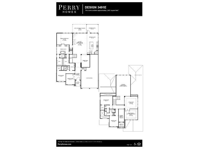 Two-story entry framed by home office with French doors. Formal dining room just off the family room and kitchen. Spacious family rooms with 19-foot ceiling and a wall of windows. Kitchen offers island with built-in seating space, a corner walk-in pantry and extends to the morning area. Secluded primary suite offers spacious bedroom. French door entry to primary bathroom, dual vanities, garden tub, separate glass enclosed shower, two walk-in closets and private secondary access to the utility room. Second floor hosts a spacious game room, adjacent media room with French door entry, secondary bedrooms and a Hollywood bathroom. An additional bedroom located on first floor. Covered backyard patio. Mud room just off the three-car garage.