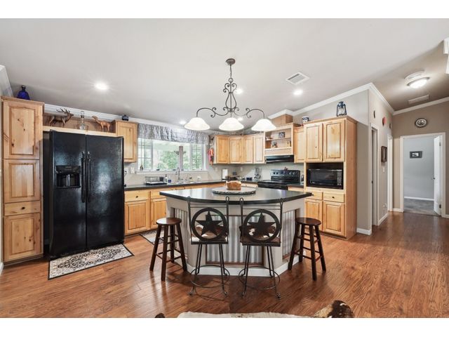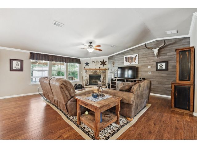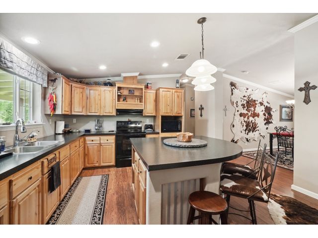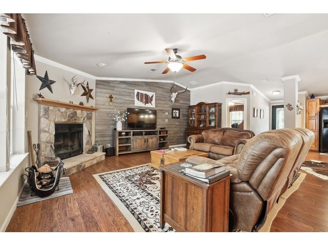 County Living, Meticulously well maintained property that will show well. 3 beds, 2 FULL baths, Open Living-Dining Area and Large kitchen combined, Center Island/ Breakfast Bar. There is Separate Laundry Room with room for Freezer. Separate Office. Large Covered Front Porch Approximately 8 ft. deep X 64 ft. this is the whole length of the house. The Back Wood Deck is Approximately 12 ft. deep x 40 ft. in length. Approximately 936 sq. ft., oversized 2 Car Garage with workshop area, lawn equipment storage. The Water Well House with Water Softener & more room for storage located in the backyard. There are 2 electrical RV plug-ins. Seller has used the 10+/- acres for deer and other game hunting. Property is surrounded by Down Home Ranch, approximately 410 acres, Working Agriculture Producing Ranch. Enjoy Living in the Country!!