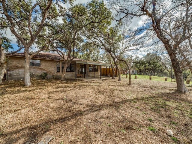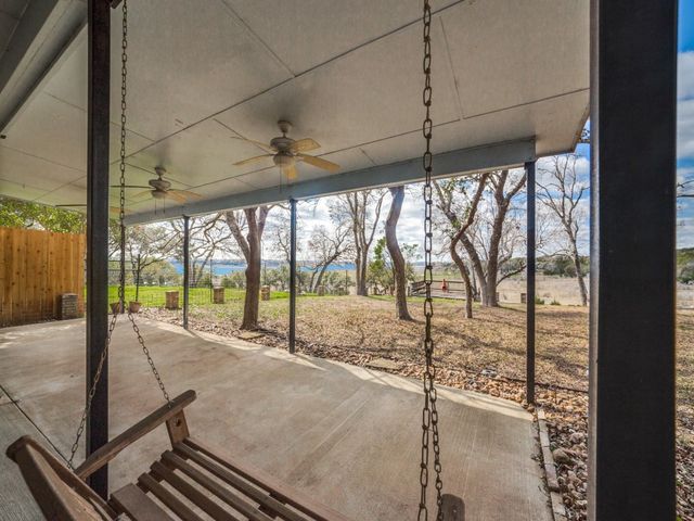 Great Sunset Lake Views from this Amazing Canyon Lake “technical” WATERFRONT home. Grand lake vistas from the den, dining room/family room and kitchen. The back of the home has a huge covered concrete patio with wooden swing to enjoy the tremendous views and lake breezes. A wooden deck in the back of the yard overlooks the lake. Lots of covered outdoor space for gatherings to enjoy beautiful Canyon Lake. The Galley kitchen was recently remodeled with custom cabinets and granite countertops. Both bathrooms were generously remodeled to include handicap accessibility and in/shower seating, along with granite countertops and walk-in showers. All bedrooms are well-sized. The carpet is in great shape and was just professionally shampooed. The Saltillo tile flooring is stunning in the den/family room/ kitchen, dining and foyer areas. This older home is graciously appointed and has newer HVAC units, Water Heater, etc. All appliances currently in the home convey with the purchase; these include: Kitchen refrigerator (and a second refrigerator in the utility room), oven/stove combo, microwave, dishwasher, washer and dryer, etc. See photos for details. This 3 bdr/2 bath home has plenty of living area to enjoy your lakefront life! The large 2 car garage is large enough to have a workbench for those weekend projects. FYI!...STRs not allowed. NOTE: Canyon Lake has been at an all-time low since last summer. The lake is not currently directly behind the property, though the property abuts the USACE 918’ elevation line so is technically classified as waterfront and has direct legal access. Hopefully, lots of rain will bring the lake back! This home is priced for a quick sale due to its being in an estate AND the currently low lake level. FHA/Conv RENO lender excited to help. Lots of possibilities! Please call for Lender info.