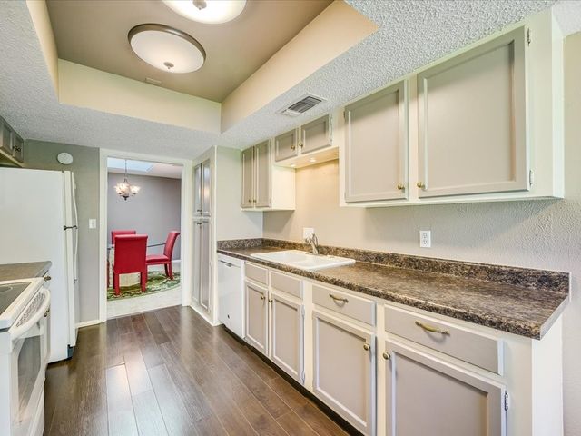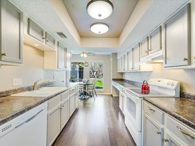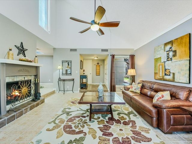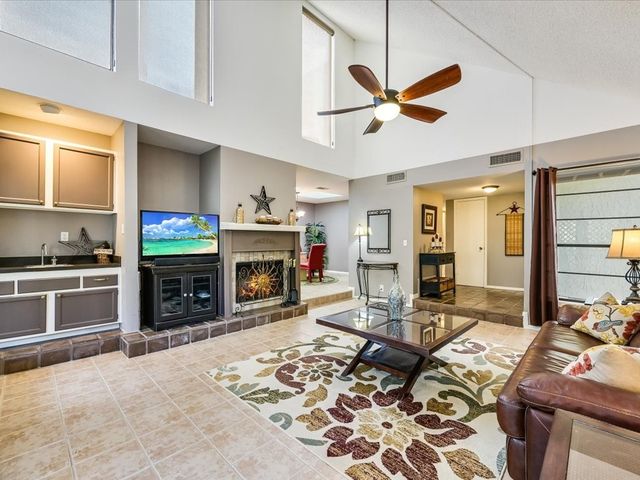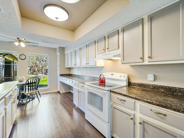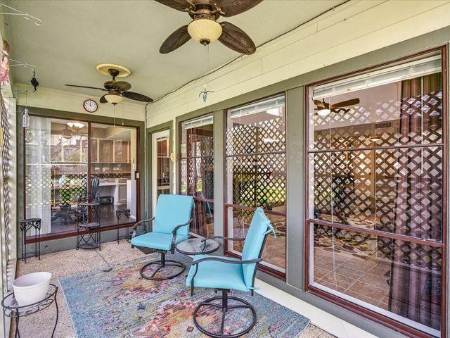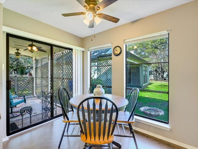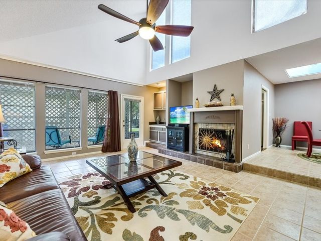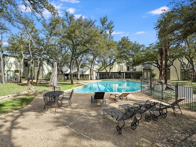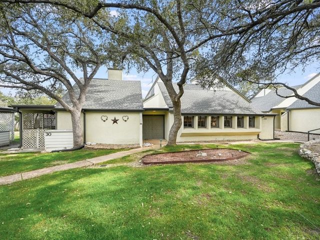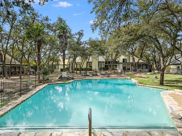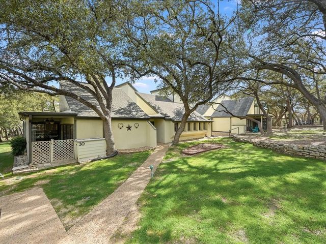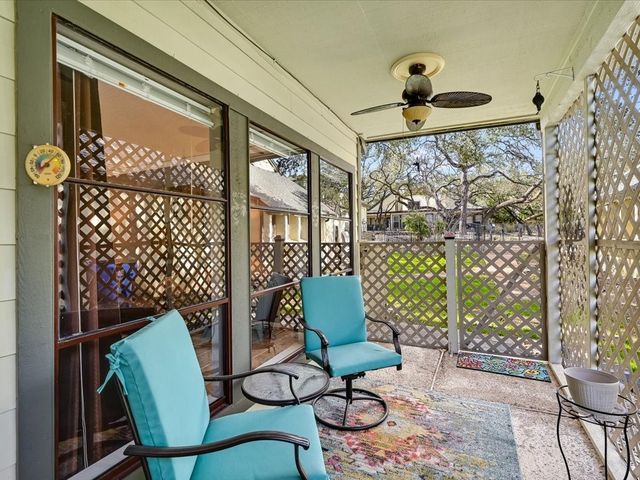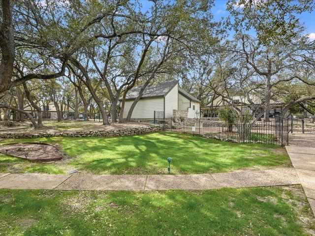 BACK ON THE MARKET!!! Fresh new updates. Furniture has been cleared out to see this wonderful clean space. This is truly not worth missing! Adorable 3/2 Condominium in the heart of Lakeway. The floor plan has been a favorite for everyone who has viewed it. HOA dues are extremely low with exterior insurance, pool, landscaping and pest control included. Perfect for a family or young couple starting out. It is also ideal for an elderly adult as it is all on one level.. The unit is just steps away from the community pool. Huge majestic old Oak trees in a very peaceful setting. Large living with high ceilings and skylights with a fireplace and sliding door leading to a screened-in patio. The kitchen is off of formal dining with a breakfast nook. The primary bedroom is huge with soaring ceilings and a walk-in closet with a nice size bath.. One of the spare bedrooms has a large walk-in closet as well. The AC unit was replaced just a couple of years ago. This is something everyone should see. Would make a great investment property as well.