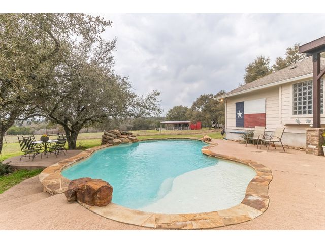 Looking for an UNRESTRICTED property? This beautiful home offers tranquil country living just minutes from Dripping Springs and Austin. Enjoy the outdoors in the pool, by the firepit or on the covered back porch. Inside boasts a large kitchen with a butlers pantry, plenty of counters and cabinets, large island, eat-in area and a breakfast bar. Pot filler and fridge is connected to R/O water and the house is on a water softener. Private office is perfect for working from home. Open living room connects to the kitchen and dining room and overlooks the pool area. Second detached 2 car garage has a work bench, 1/2 bath and window a/c and can easily be converted to a studio apartment. Close to shopping, dining, breweries, wineries, parks and entertainment.