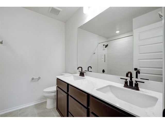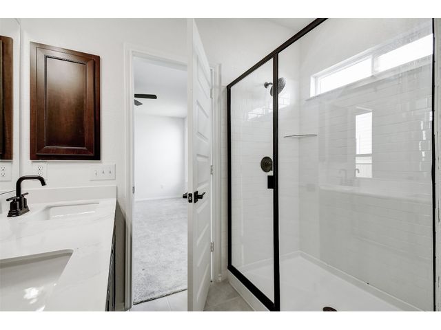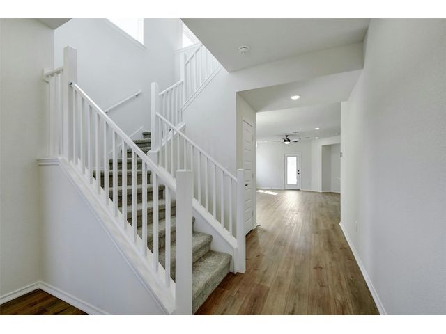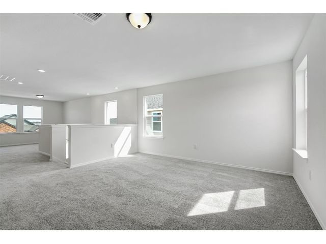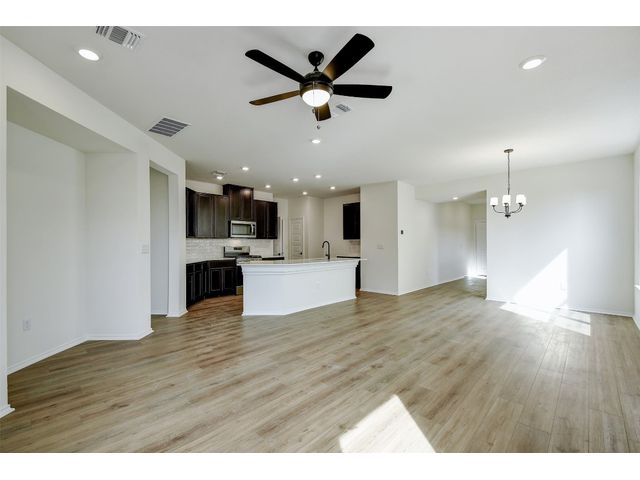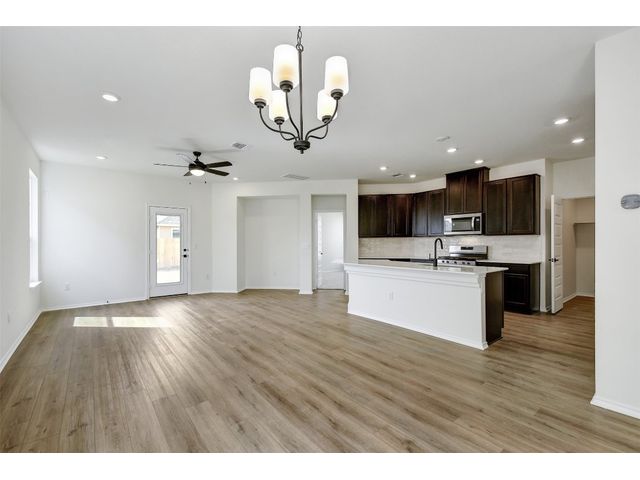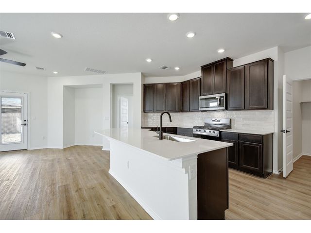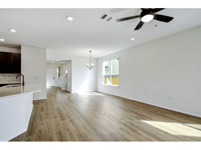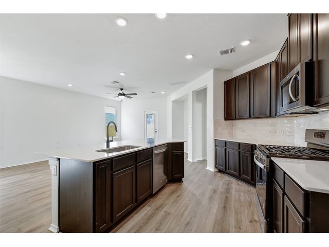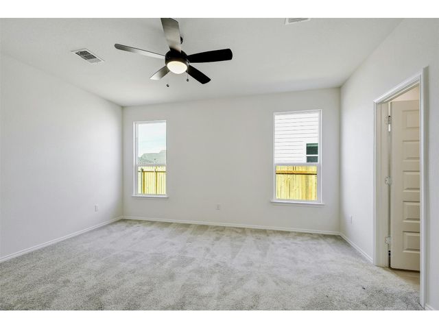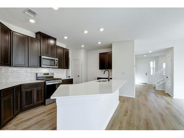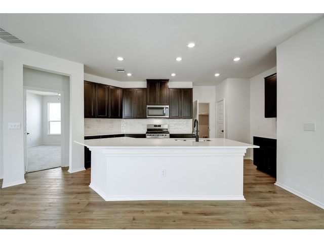 This beautiful two-story home offers ample space for comfort and relaxation with a spacious great room perfect for gathering with loved ones. The kitchen includes 42-in. upper cabinets in Espresso, Silestone® countertops and a sleek tile backsplash. The first-floor primary bedroom boasts a walk-in closet and connecting bathroom with a dual sink vanity and luxurious shower with tile surround. Upstairs, a game room offers endless possibilities. Enjoy cozy carpeting in the game room and bedrooms, luxury vinyl plank flooring in the kitchen and great room, and tile in the baths. Additional highlights include ceiling fans in the great room and primary bedroom, cordless blinds, an ecobee3 lite smart thermostat, and Sherwin-Williams® interior paint. Relax outdoors on the covered back patio. Make this home yours today!