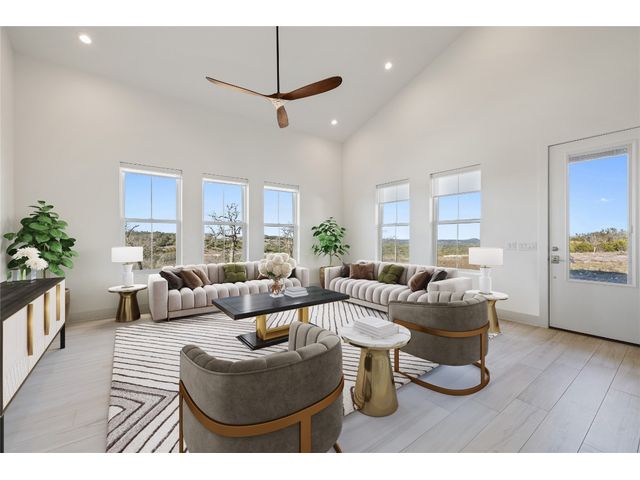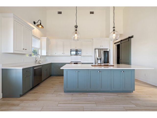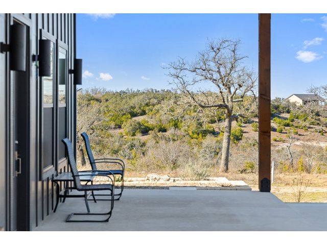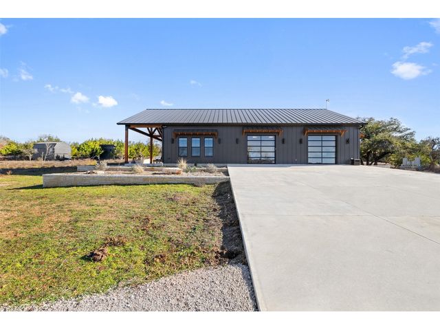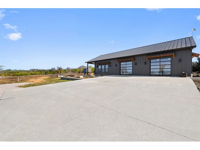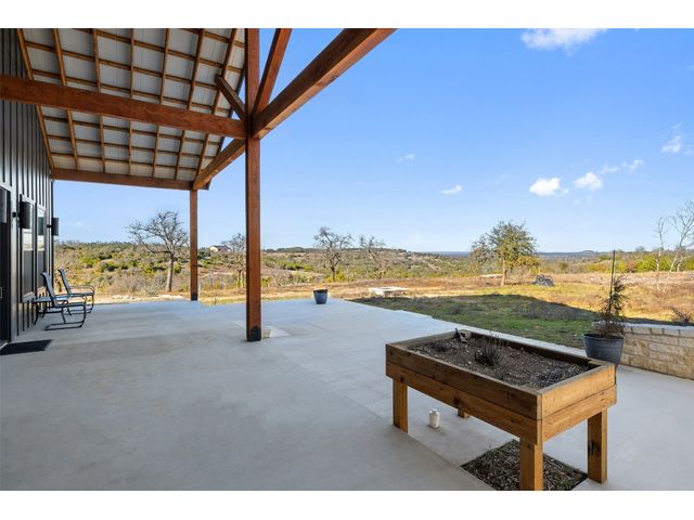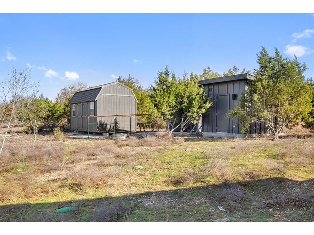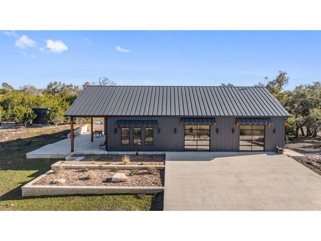 Exceptional barndominium nestled on 13.59 acres in Blanco, Texas! This newly constructed custom home sits atop the property, providing breathtaking views and utmost privacy. Positioned within The Divide, a charming 20-parcel acreage sub-division boasting a gated entrance and paved roads. The residence spans 1,100 SF, featuring 1 bedroom, 1 1/2 baths, and a walk-in pantry/laundry room. The attached 1,460 SF shop is climate-controlled, adaptable for use as a garage, living space, or a vibrant party/game room. Enjoy the spaciousness enhanced by a 23' vaulted ceiling in the shop, living, and patio areas. Revel in the expansive covered and uncovered patio spaces. Inside, discover porcelain plank tile in the living area and epoxy flooring in the shop. The chef's kitchen boasts custom cabinetry, an island, and quartz countertops. The property is adorned with a variety of Oak trees and cedar, offering a serene environment. The large, clear area below invites recreation, hiking, or the potential for additional structures. Water is efficiently supplied by a complete well system with a 2500-gallon storage tank and an engineered reverse osmosis water treatment system. An additional 2500-gallon rainwater collection tank complements the property. Exterior features include stained Douglas fir beams and posts, architectural cedar awnings, a mason stone fire pit, and extensive limestone wall landscaping. Conveniently located just minutes from Johnson City, Blanco, and Fredericksburg, the property benefits from the current Ag exemption. This is a rare chance to own a secluded piece of the Hill Country, less than an hour's drive from both Austin and San Antonio. Seize the opportunity for Hill Country living at its finest!