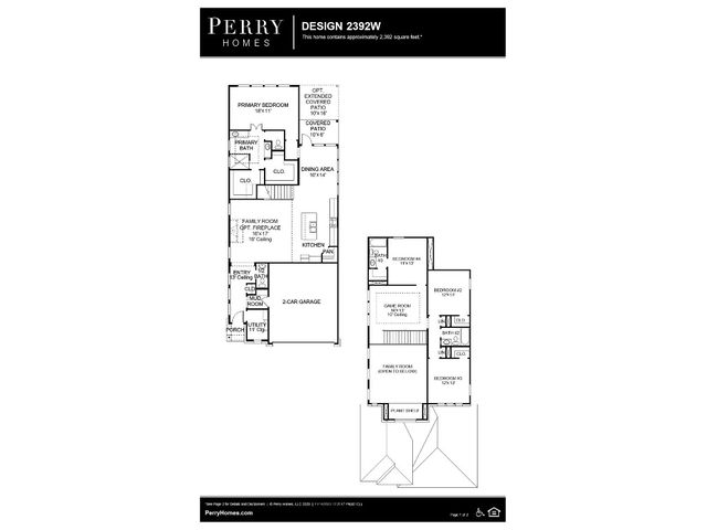 Step through the front entrance and you'll find a spacious entryway adorned with three large windows allowing natural light to illuminate the space. Located right off the front entrance is the utility room. As you proceed into the family room, you'll be captivated by the 19-foot ceilings. The corner kitchen features an island with built-in seating and a walk-in pantry. The adjacent dining area is bathed in natural light from the corner wall of windows. Enter the private primary suite, where a wall of windows welcomes you filling the room with natural light. French doors lead you to the primary bath, which offers dual vanities, a spacious glass-enclosed shower, and two oversized walk-in closets. On the second floor, you'll discover an open game room. The secondary bedrooms feature walk-in closets, separate linen closets, and share a full bathroom. A private guest suite with a full bathroom completes the upstairs. Outside is an extended covered backyard patio. Completing the floor plan is a mud room located just off the two-car garage.