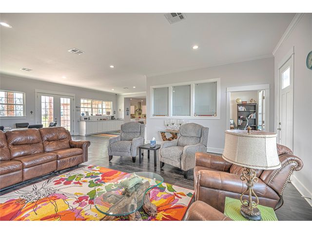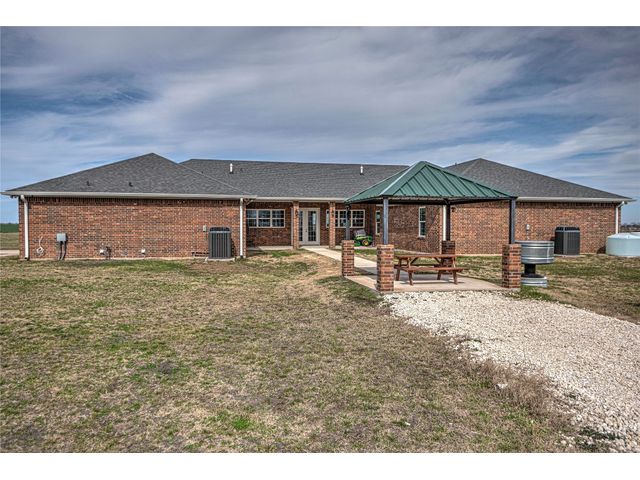 Sellers have made a HUGE PRICE IMPROVEMENT!! Corner acreage w/ 4705 sf custom built home by Drews Hunt in 2018. 4 sides brick, 6 beds, 4.5 baths to include 2 master suites w/ sitting areas, 2 jack & jill bathrooms, office w/ state of the art security cameras, 2 LV, 2 DN areas, an area w/ an entertainment bar w/ lots of counter space & cabinets, 4 seated built in computer area, huge laundry room w/ metal storage racks & multiple washer & dryer hookups, spacious storage room/work shop, commercial kitchen w/ lots of cabinet pull outs, movable island, eat in breakfast area, Stainless Steel applicances including double ovens, dishwasher & refrigerator. Separate commercial size refrigerator/freezer, WI pantry w/ lots of shelves & space for your freezer. Crown molding in main living areas, recessed lights, blinds & vinyl flooring throughout. Spray foam insulation, gutters, flood lights, 2 propane tankless water heaters, 2 large AC units, large front & back covered patios, architectural shingles, gazebo on cement pad, fire wood holder, fire pit. 27.65 acres, 3 tanks, fenced & cross fenced, driveway w/ gate, extra 550 gal water tank on cement pad, leased propane tank to heat hot water, extra electric pole on property. 1500 sf. barn w/ water, 3 stalls, chute, & chicken coop. Separate holding pen/dog kennel, AG exemption. Concrete pad for parking many vehicles, room for RVs, boats, tractors, etc! Owner says Levi Water Corp. & commercial sized septic system. 2 electrical boxes-400 amps. Super low tax rate: 1.36! Conveniently located 5 mi or 10 mins from I-35. This unique property has so much to offer and can be used for commercial, farm & ranch, residential, industrial, retail, offices, group home, daycare, Boys/Girls Club after school programs, AirBnB - endless possibilities for turn key operations. At this low price Buyers pay all their own costs.